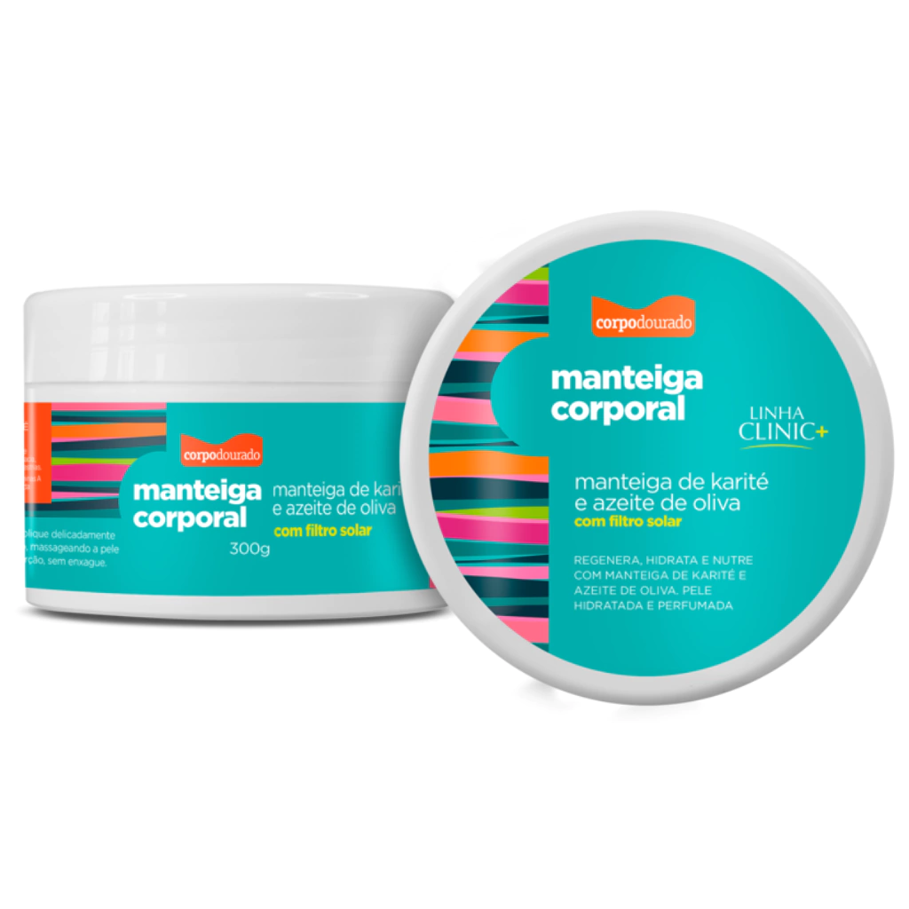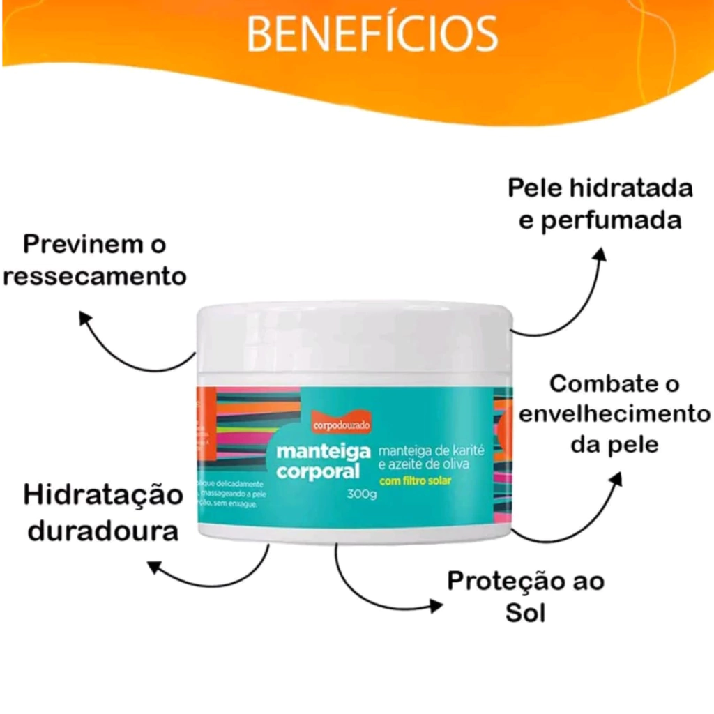 Manteiga Corporal com Manteiga de Karité e Azeite de Oliva e Filtro Solar - 300g Corpo Dourado