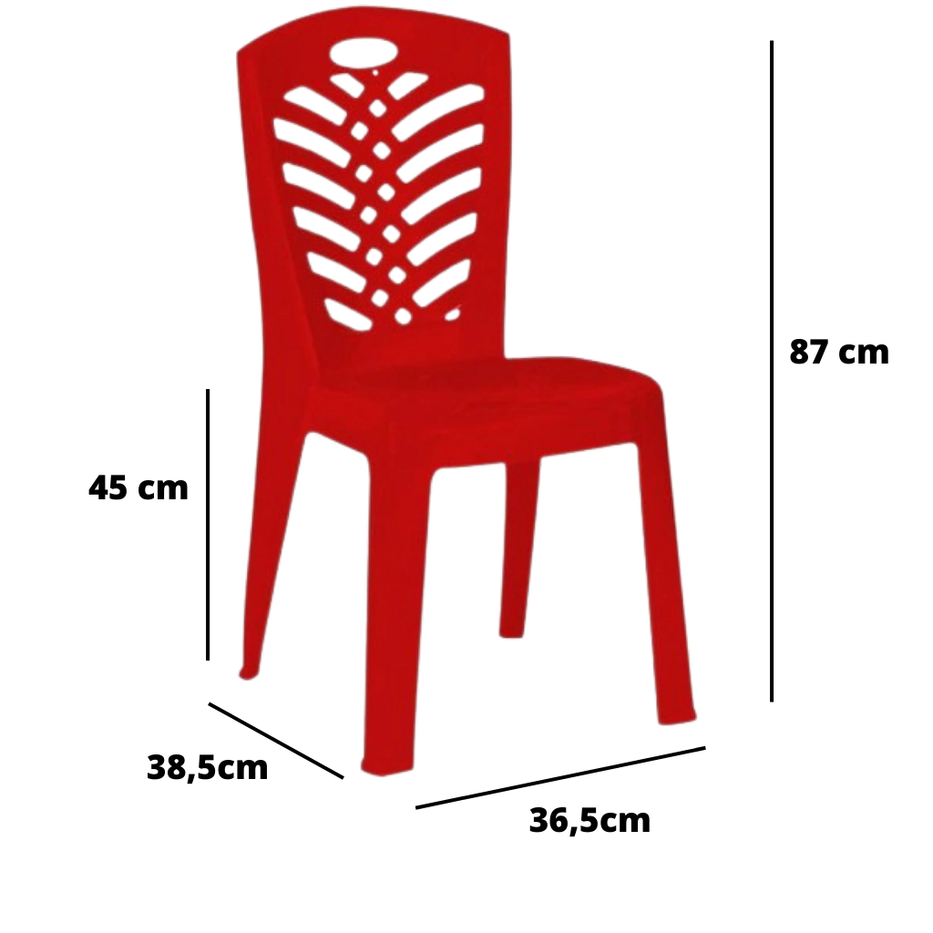 Ela conta com encosto ergonômico, capacidade máxima de 120KG e sua estrutura é produzida em Polipropileno.
