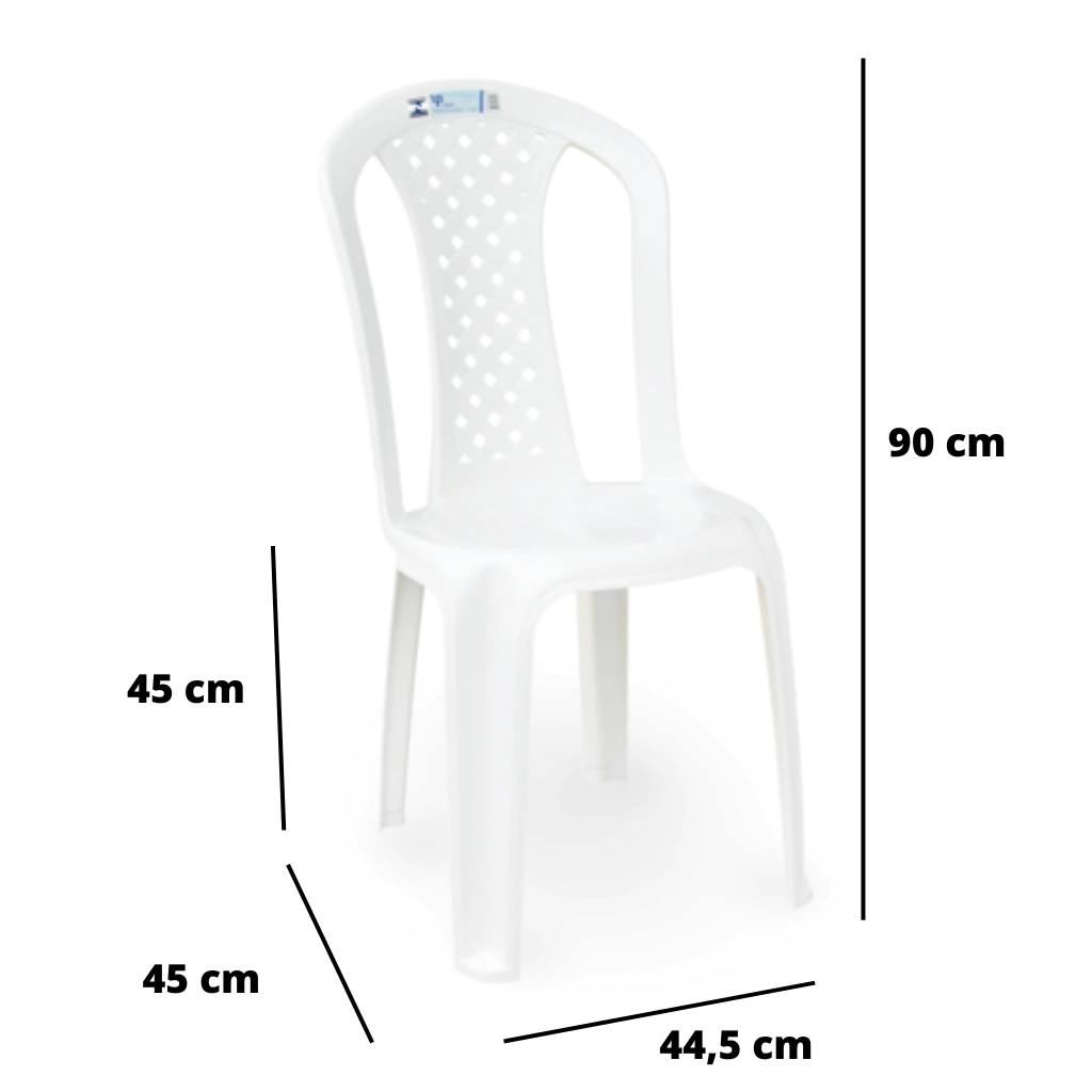 Ela conta com encosto ergonômico, capacidade máxima de 120KG e sua estrutura é produzida em Polipropileno.