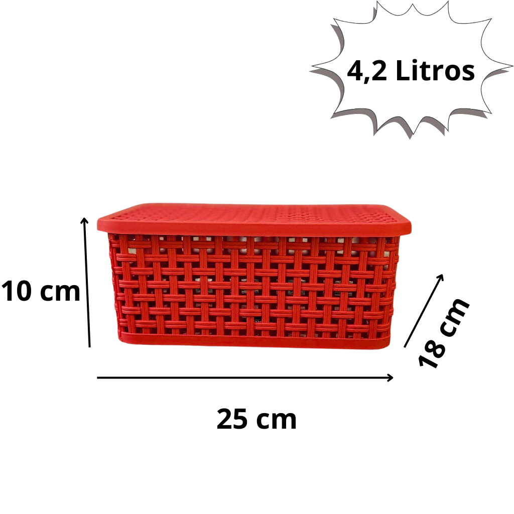Caixa Organizadora Rattan com Tampa 4,2L Para Guarda-Roupa, Banheiro, Cozinha, Escritório Ideal para maquiagem, temperos