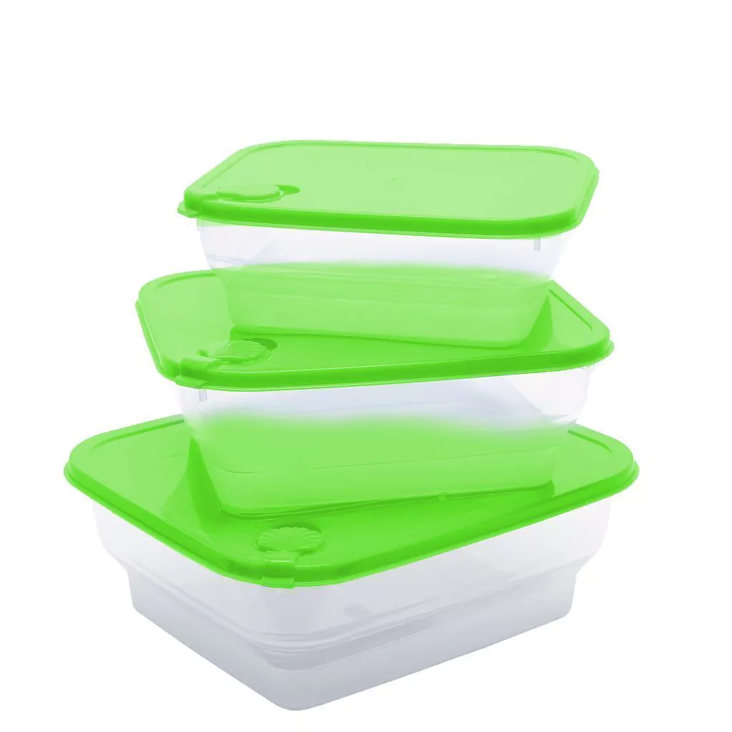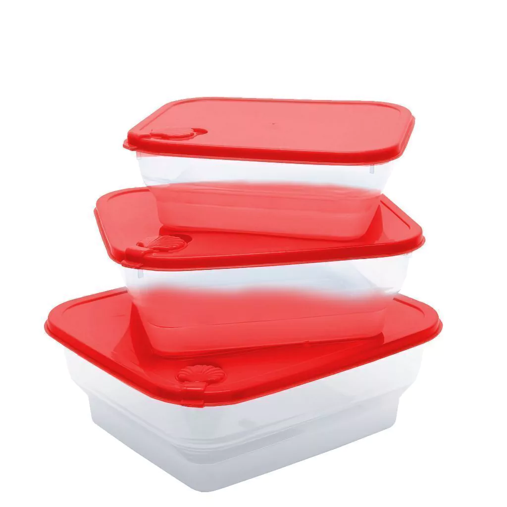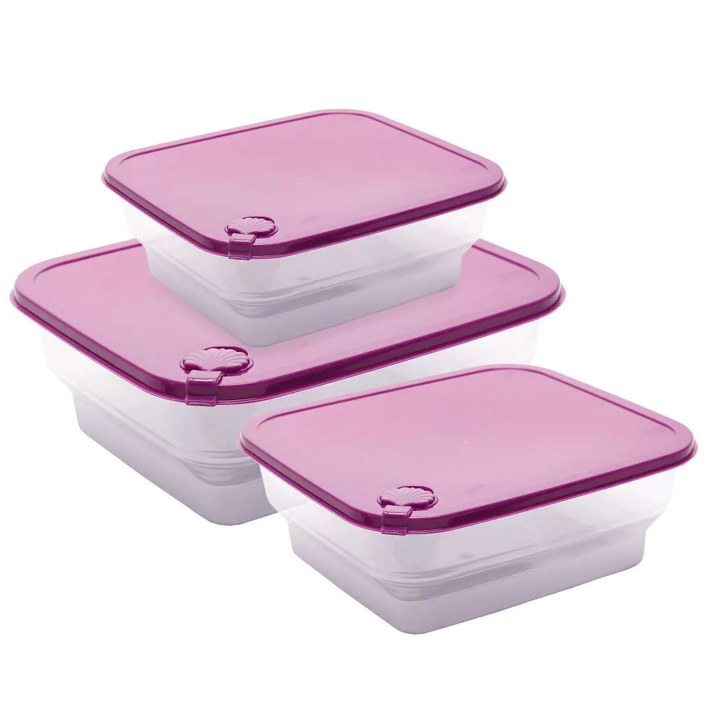 Conjunto de 3 Potes Para Mantimentos Quadrados Com Tampa Com Válvula Para Micro-ondas. 1L. 1,6L. 2,4L.