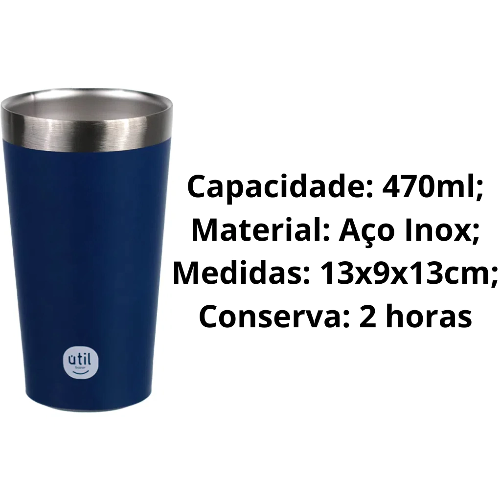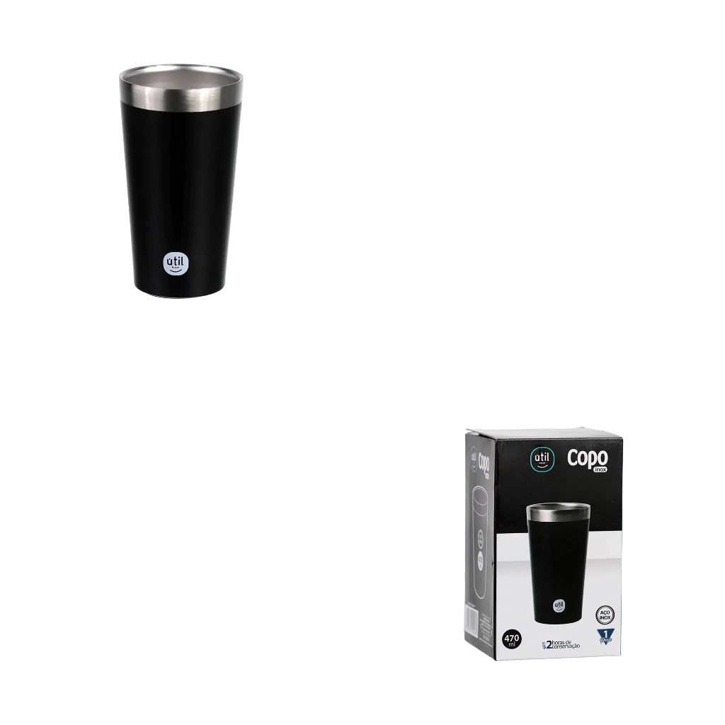 Copo Térmico Inox Útil Bazar 470ml - Bebidas na Temperatura Ideal a Qualquer Momento