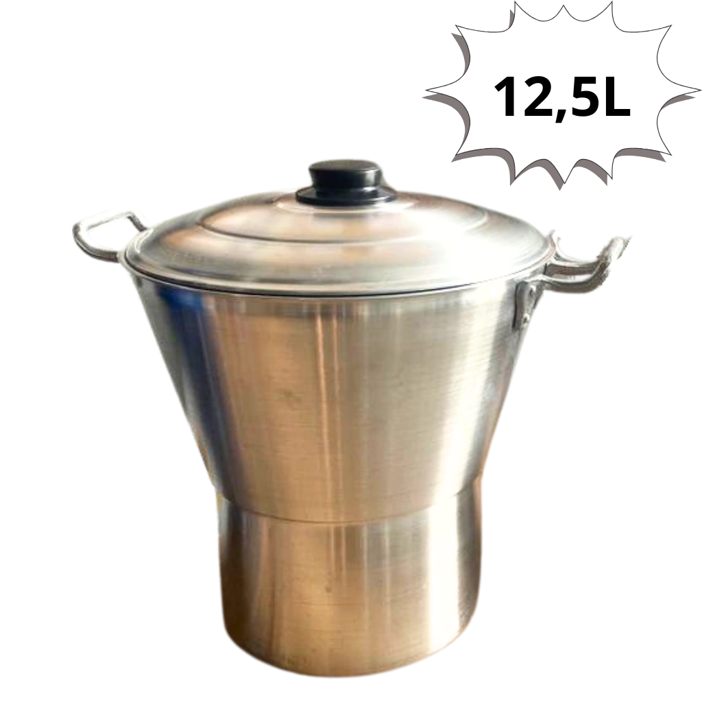 - A cuscuzeira tem uma capacidade de 12,5 litros, proporcionando espaço suficiente para diversas preparações.
