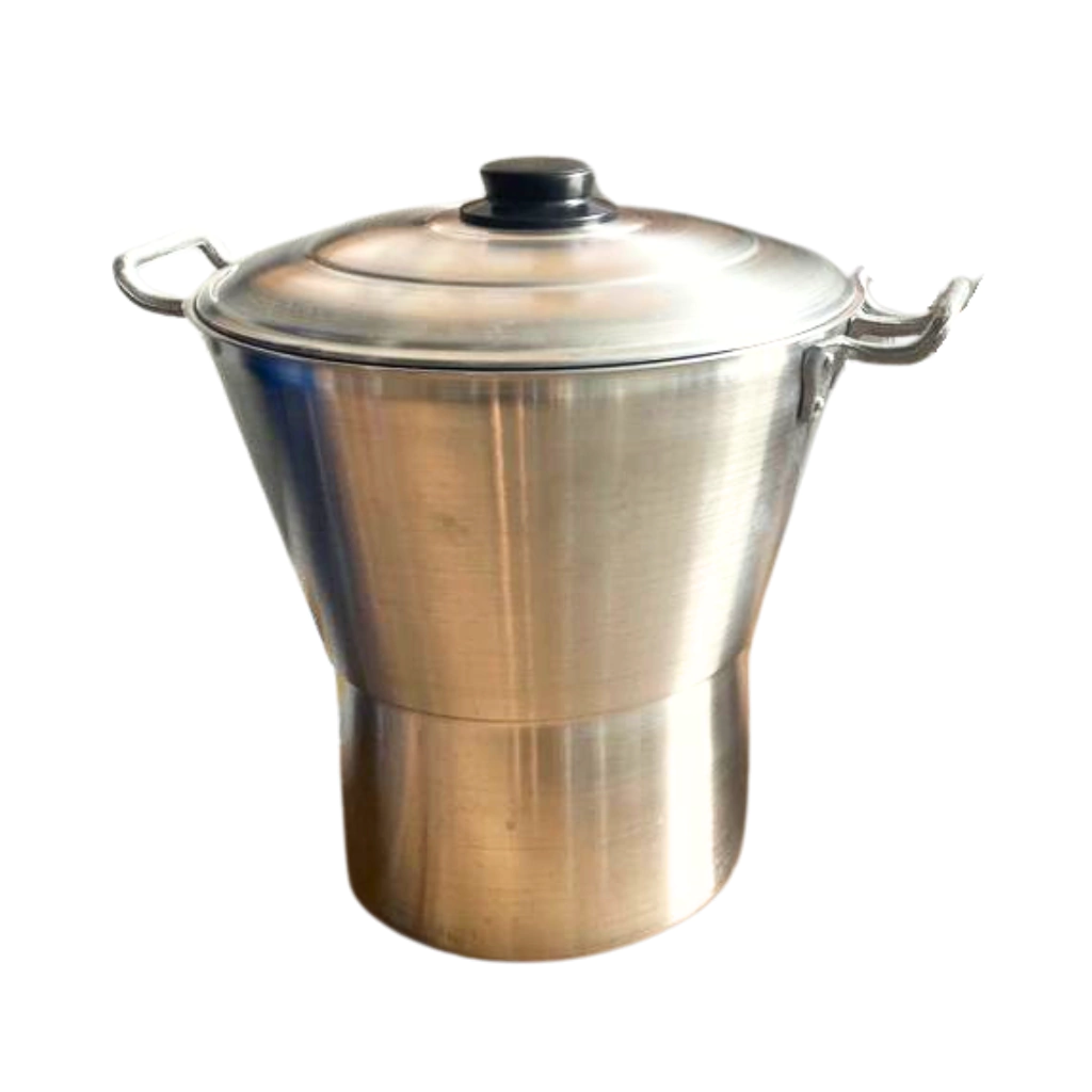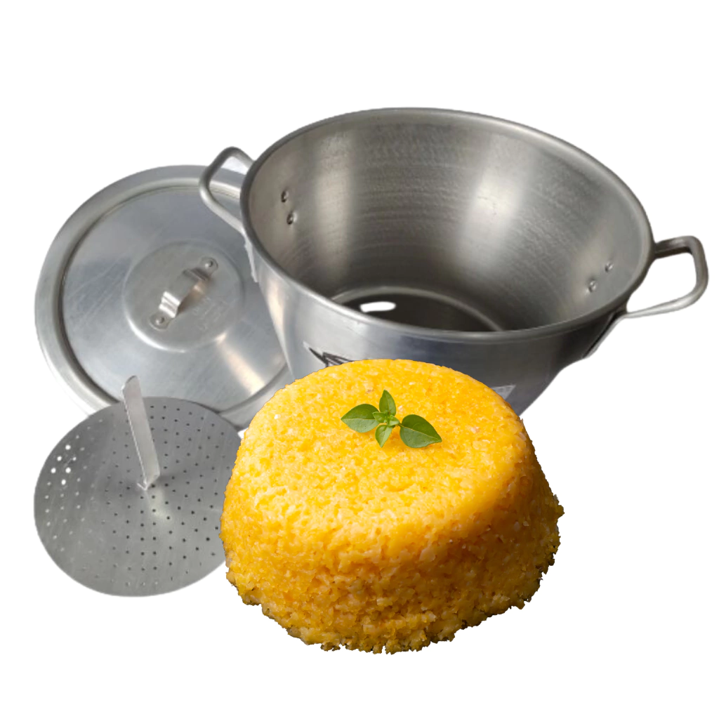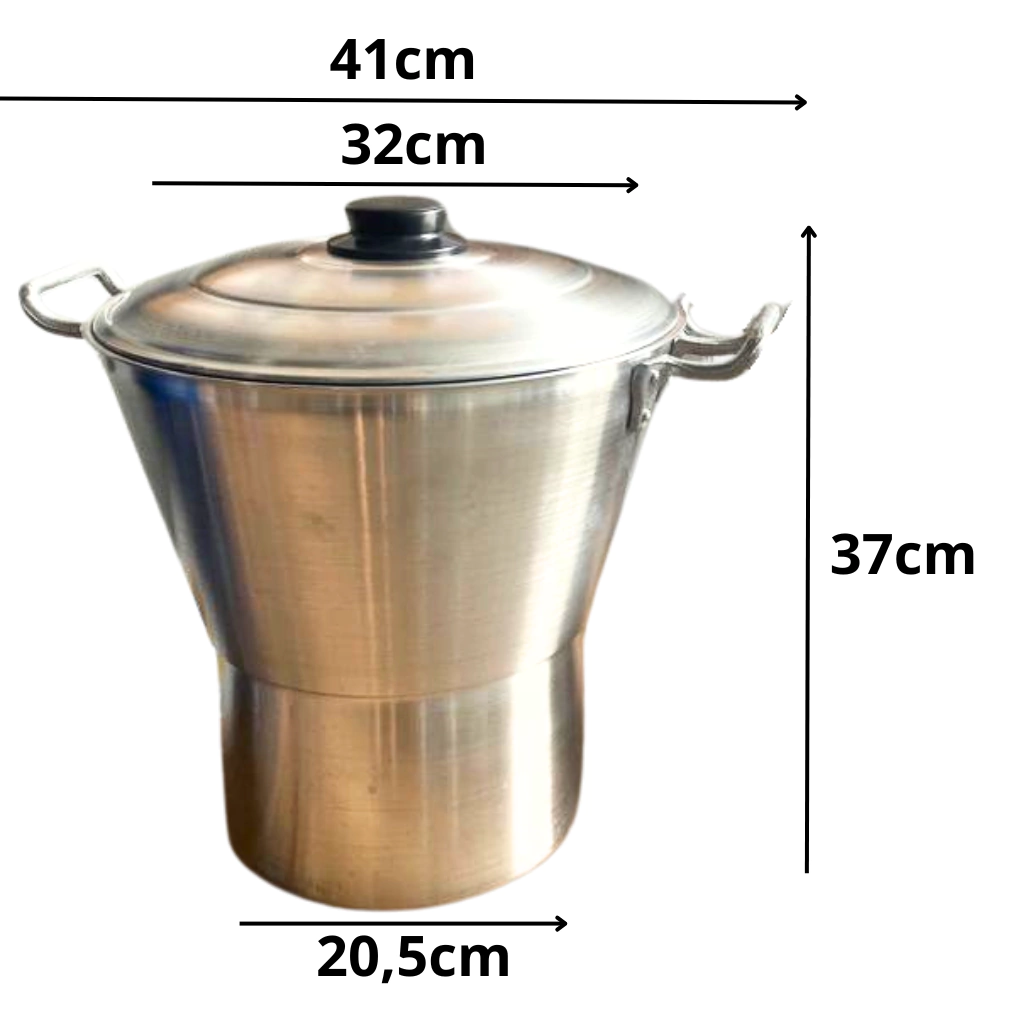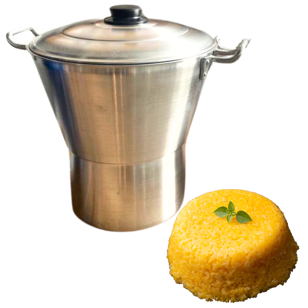 - A cuscuzeira é fabricada em alumínio lixado, proporcionando durabilidade e resistência.