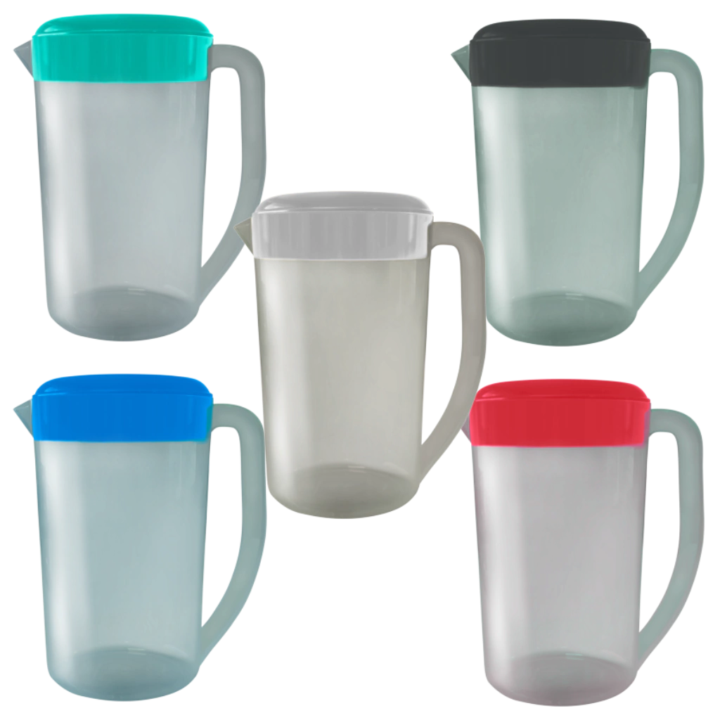 ✔ Design Moderno: Jarra totalmente transparente com tampa colorida (cores variadas) e alça ergonômica para fácil manuseio