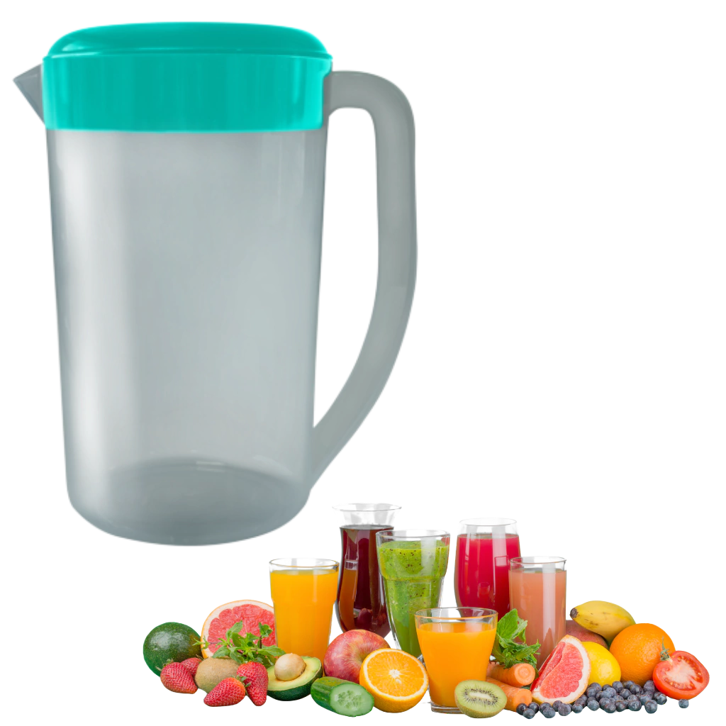 Jarra Grande Para Suco e Agua de Geladeira 4 Litros 4L Transparente Com Tampa Colorida BPA Free Merconplas