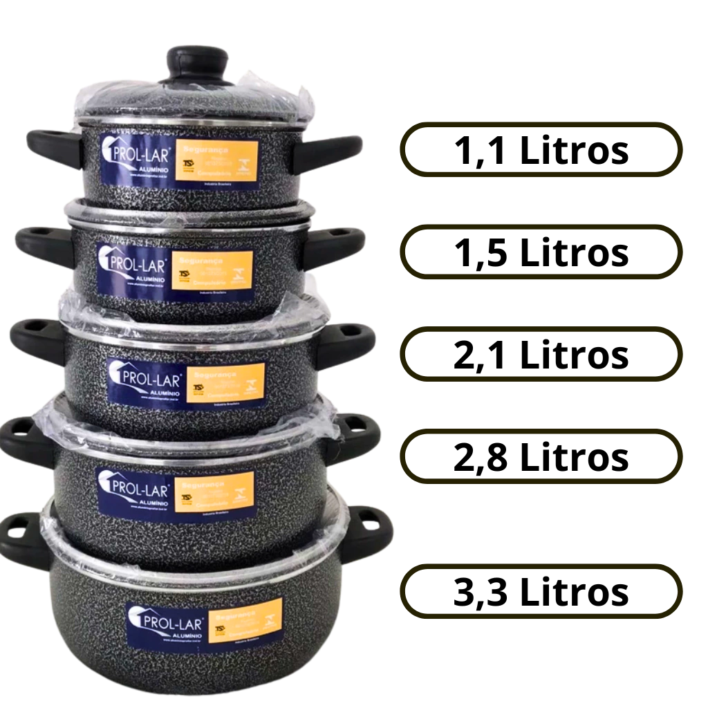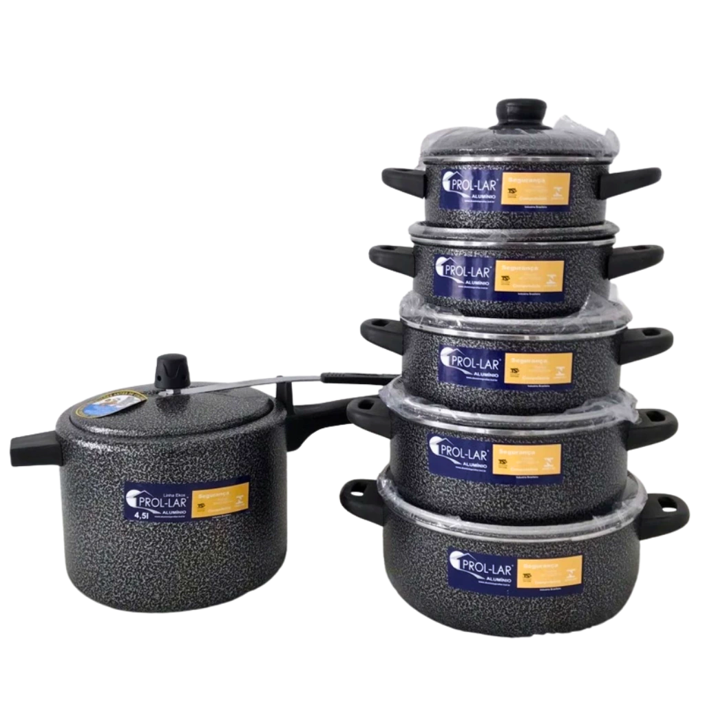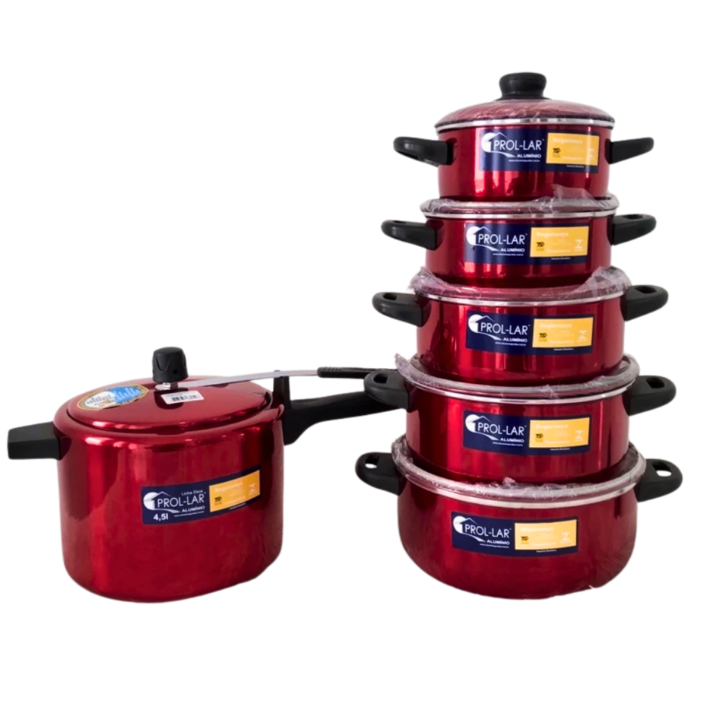 Jogo de Panelas 5 Peças + Panela de Pressão 4,05 Litros Prol-lar em Alumíniode Excelente Qualidade: Tradição e Modernidade na Sua Cozinha!