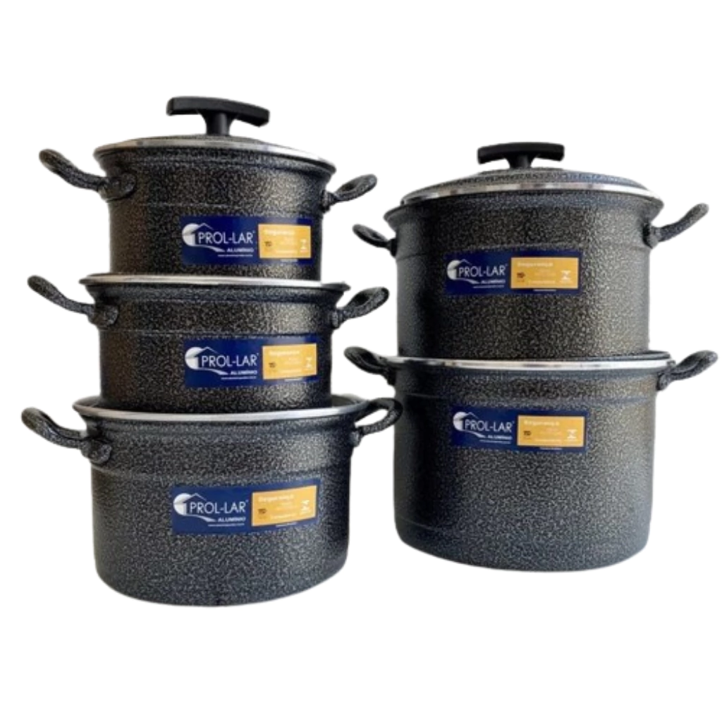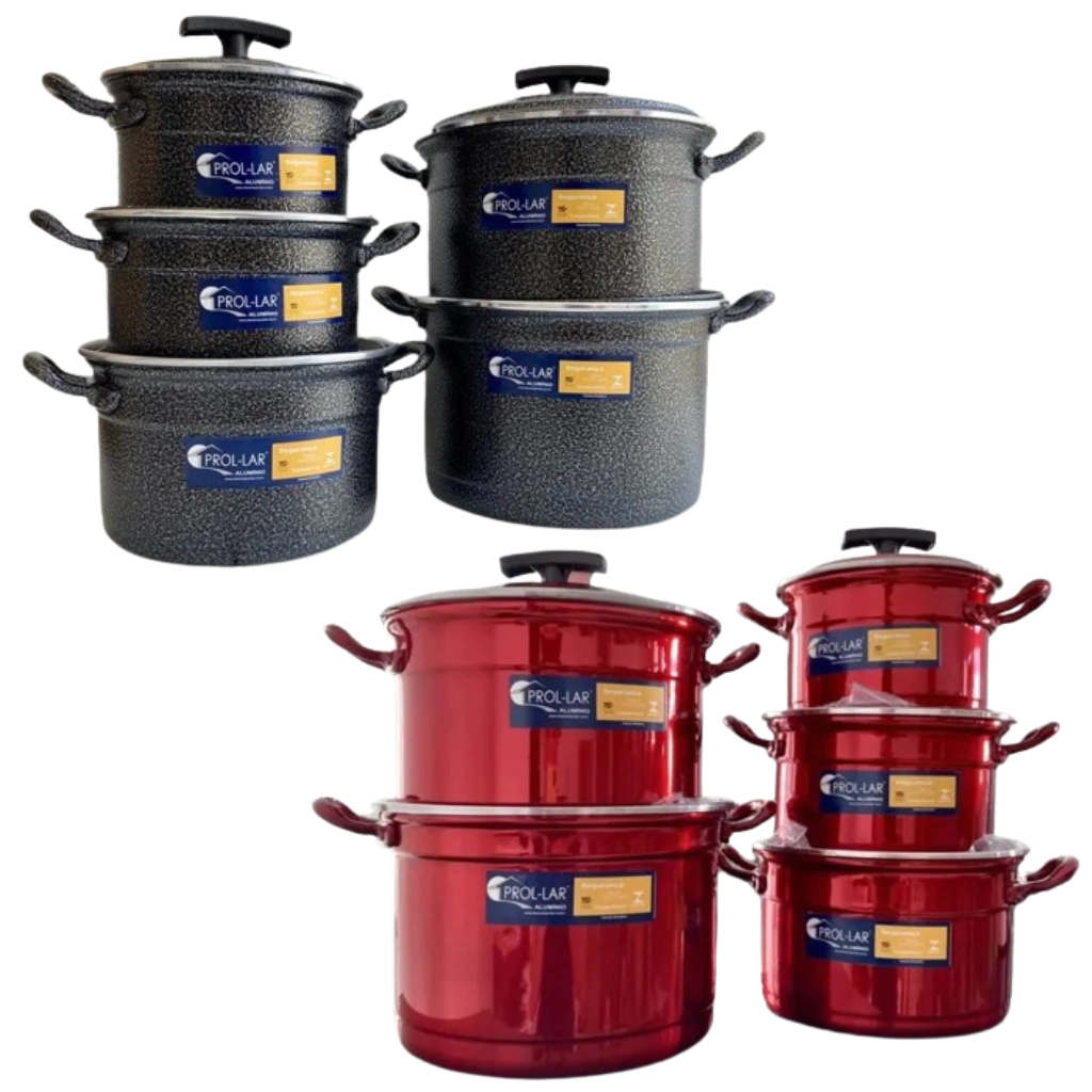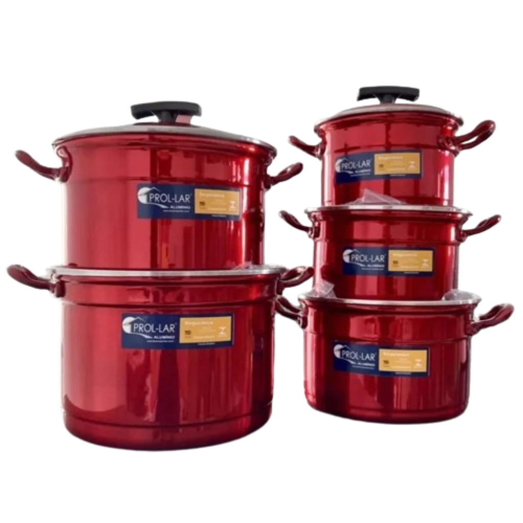 Jogo de Panelas 5 Peças Grandes Altas Alumínio Resistente Com Alças em Alumínio e Pomel em Baquelite Prollar Pop Pintada