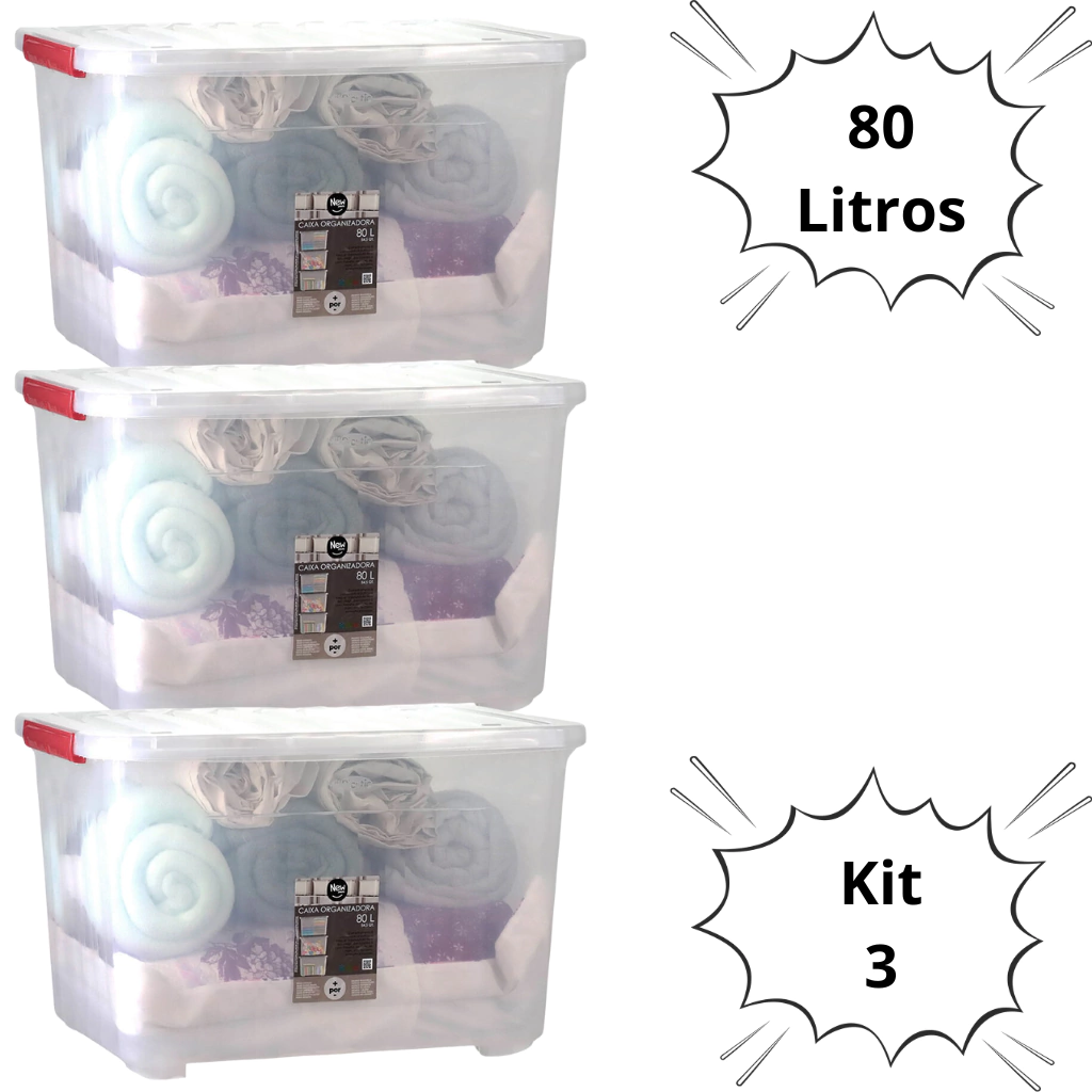 Mantenha sua casa organizada com estilo e praticidade utilizando o Kit de 3 Caixas Organizadoras com Tampa New Plastic. Com capacidade de 80 litros por caixa, estas caixas são perfeitas para armazenar uma grande variedade de itens, desde roupas e brinquedos até documentos e utensílios domésticos. Com design transparente e rodinhas, você pode facilmente visualizar e mover seus pertences sem esforço.