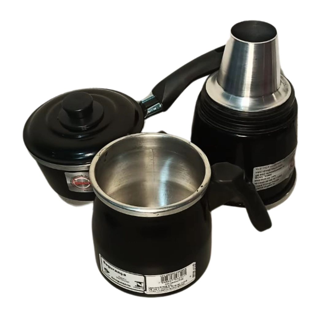 - Multifuncionalidade: Um único produto que funciona como cafeteira, cuscuzeira e leiteira.