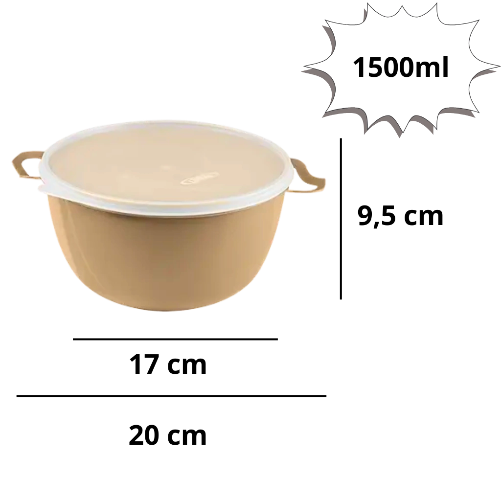 Média (1,5L): 20x17x9,5cm - perfeita para saladas e lanches
