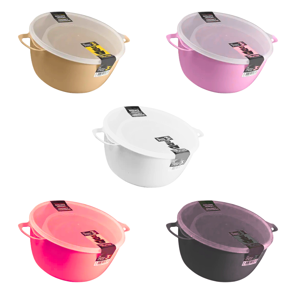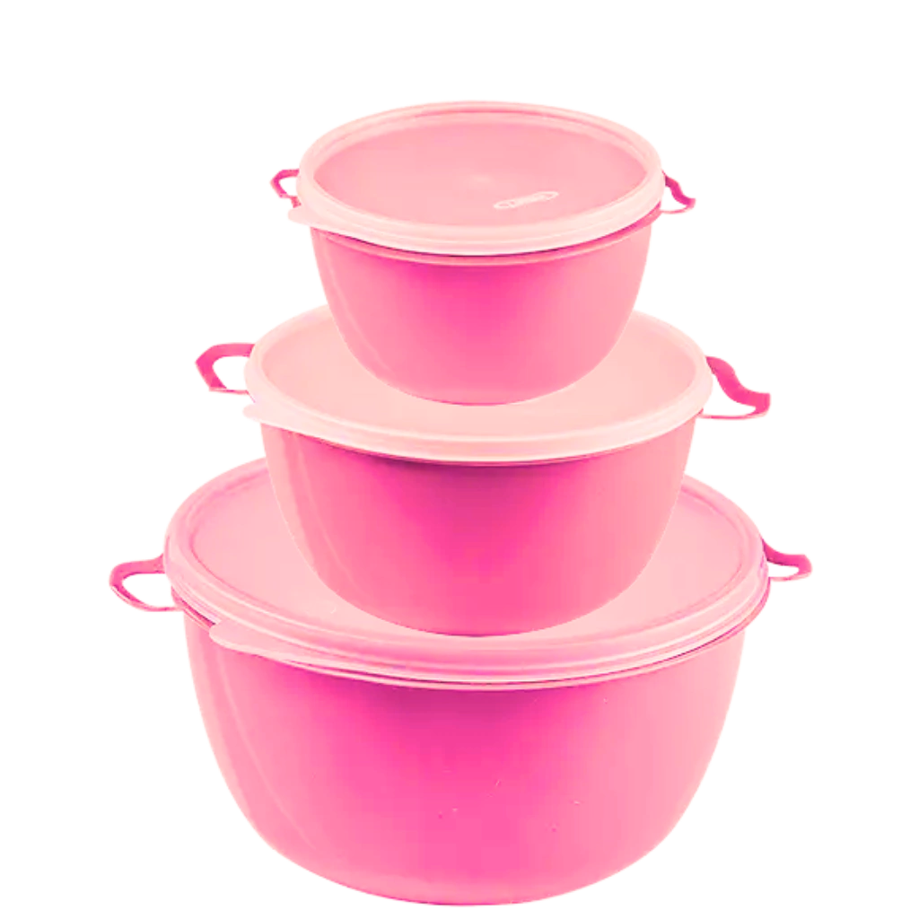 Kit 3 Potes de Plástico Bacia Com Tampa PMG Cumbuca Vasilha Saladeira Tapoer Grande Tapuer Quality Color Lummar Redonda