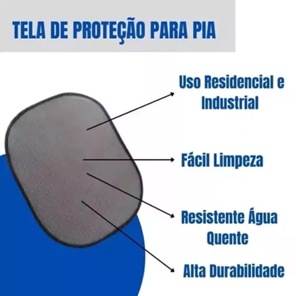 - Proteção e Organização: A tela protege a cuba de inox contra riscos e retém todos os resíduos que podem causar entupimentos, evitando que alimentos e sujeiras cheguem às tubulações de esgoto.