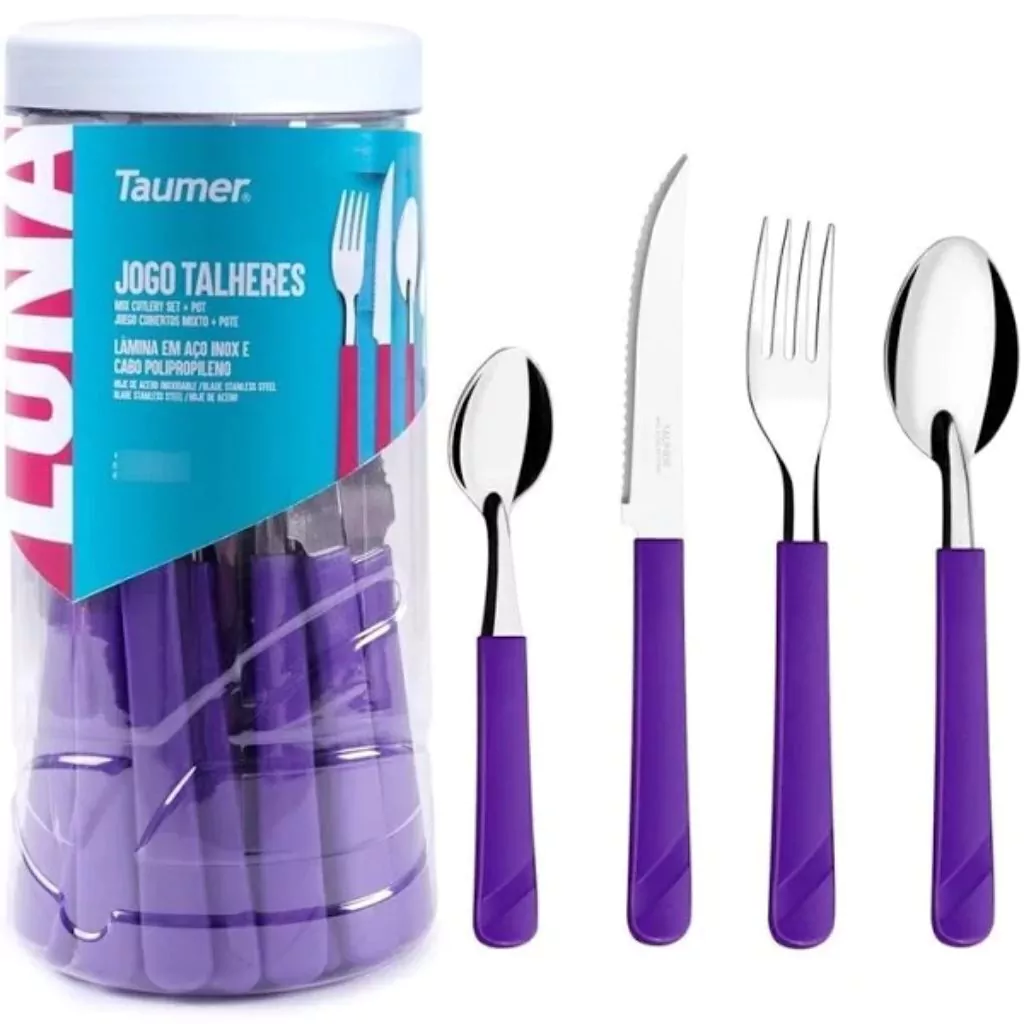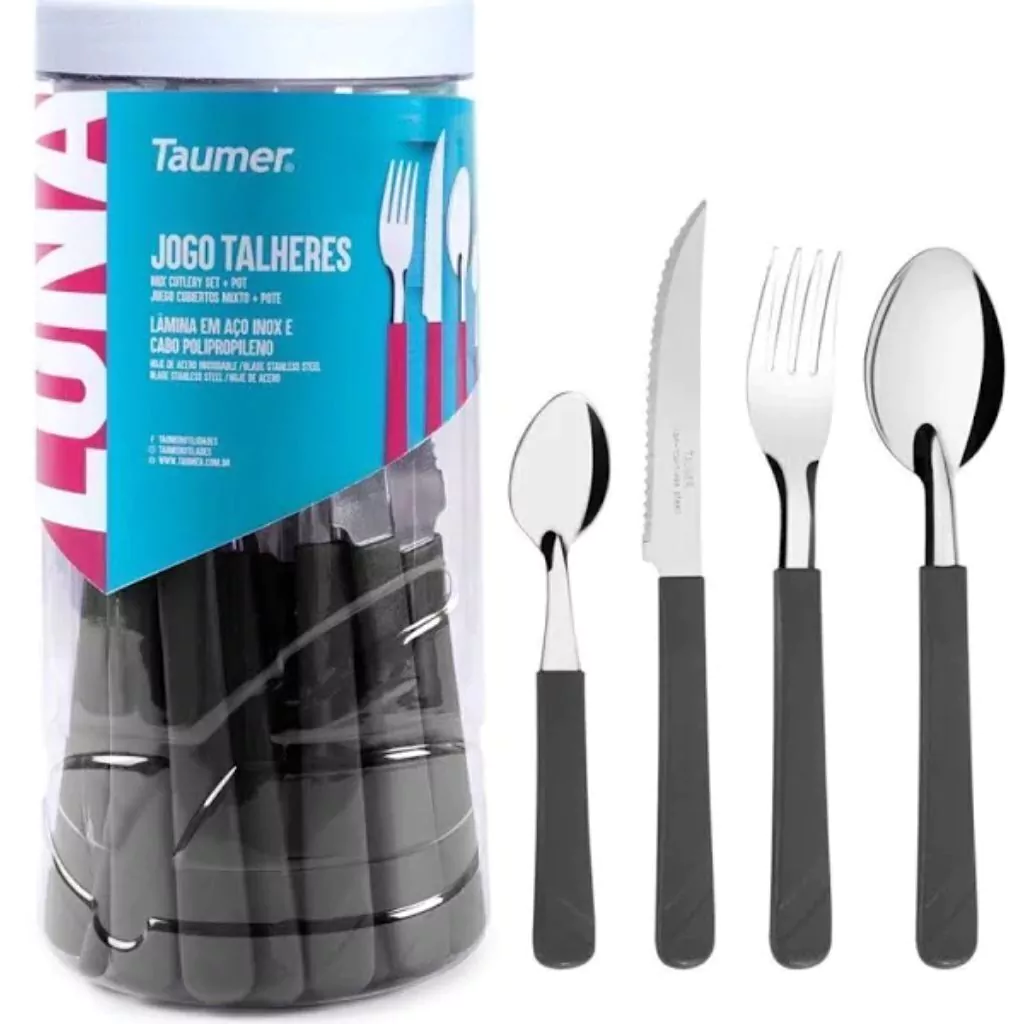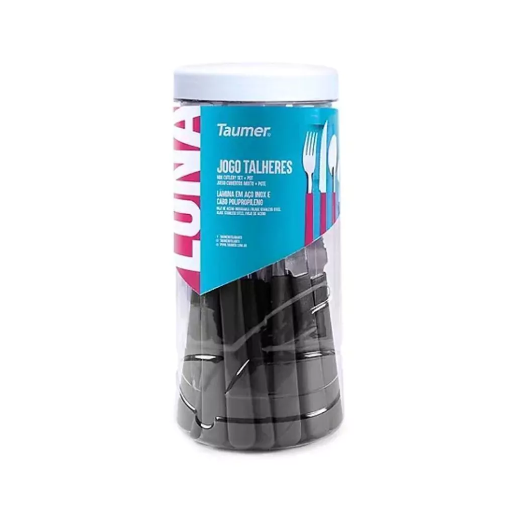 Jogo de Talheres Taumer Luna 16 Peças + Pote Plástico - Beleza e Praticidade para a sua Mesa!
