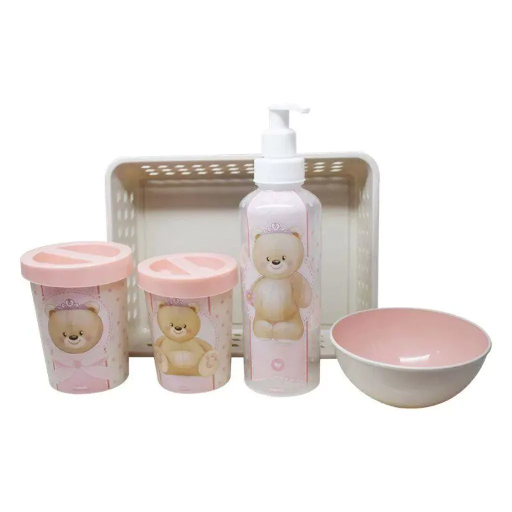 Kit Higiene P/ O Bebê 05 Pçs C/ Bandeja Decorada - Plasutil - Azul Rosa Urso Ursa