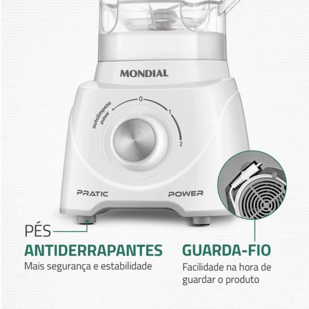 Liquidificador Pratic Power, Mondial, Branco, 550W, - L-97-W 220V 2,2 Litros 2 Velocidades Função Autolimpeza Mundial