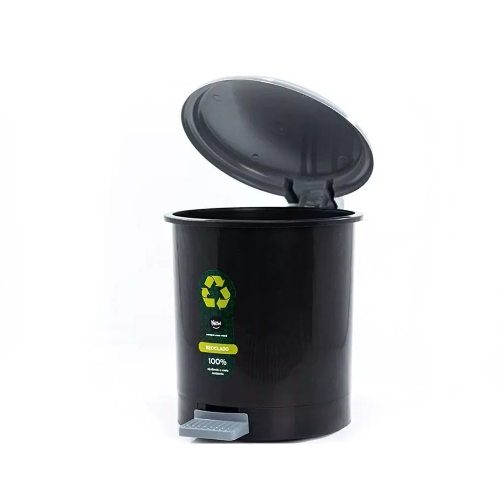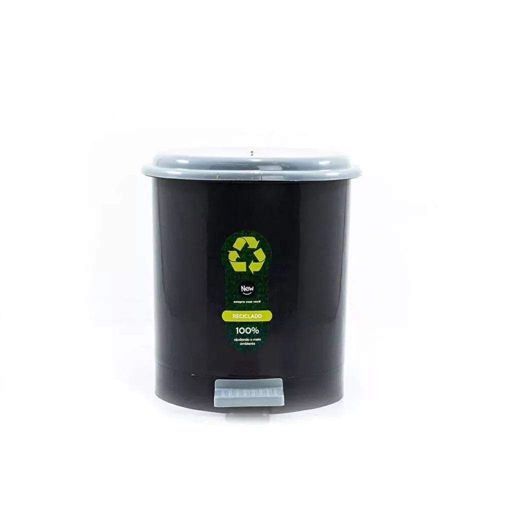 Lixeira Redonda 12 Litros Cesto de Lixo Para Cozinha e Banheiro com Pedal Black Eco Reciclada