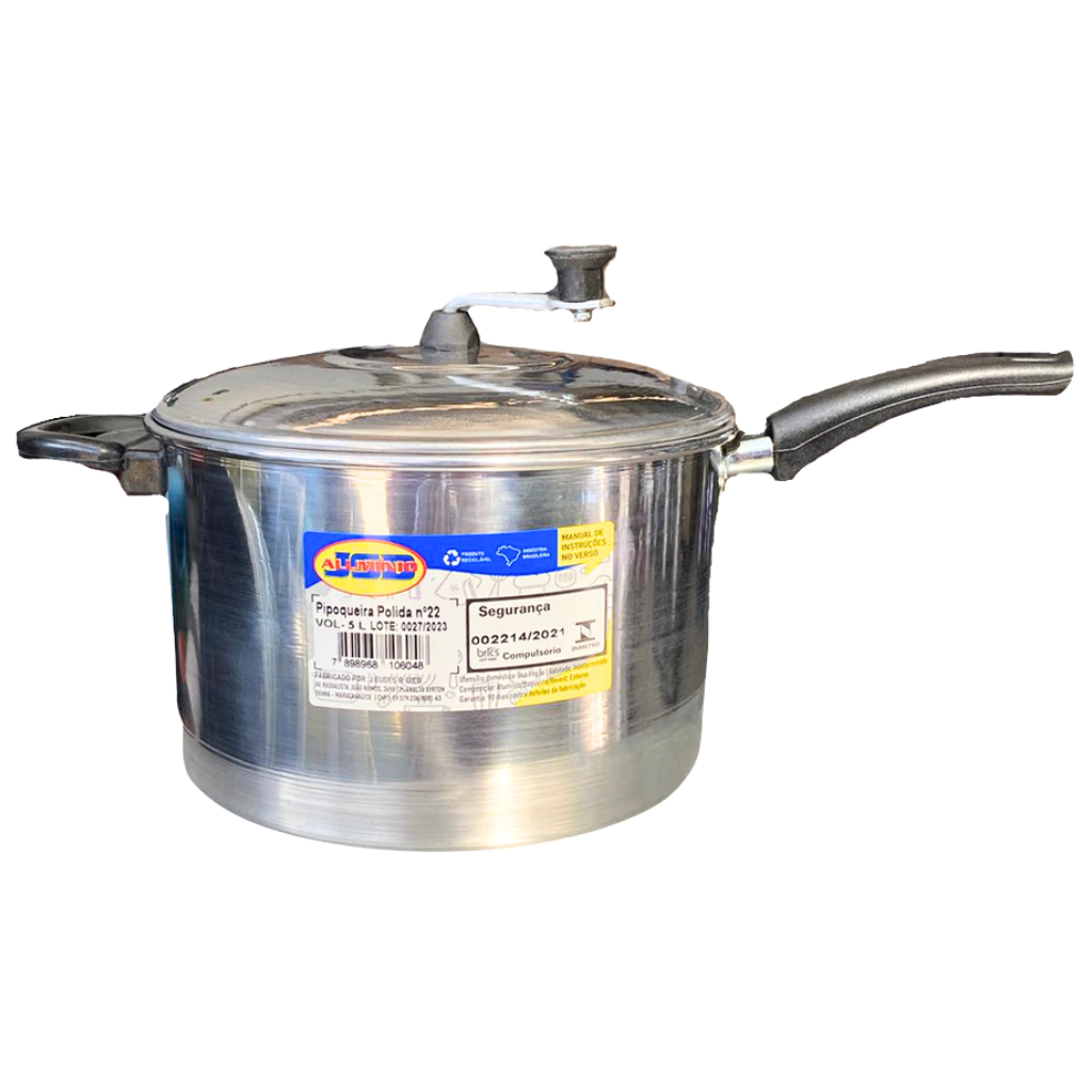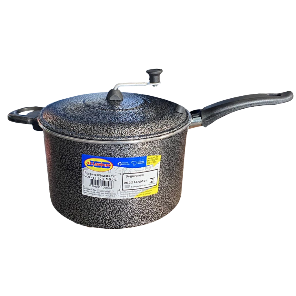 Pipoqueira de Alumínio 22cm – 5 Litros – JSD Alumínio – Polida ou Craqueada
