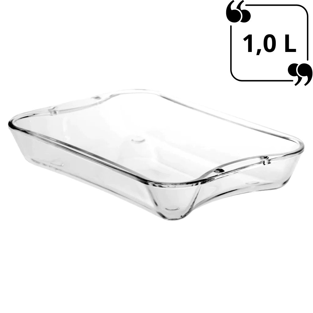 Travessa Assadeira 1 Litro Retangular de Vidro Temperado Vai Ao Forno Convencional e Microondas Útil Bazar