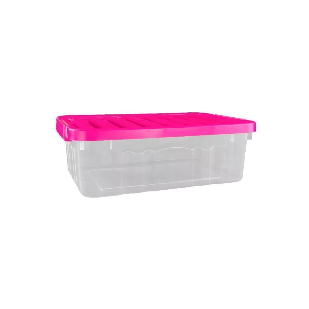 O modelo organizador possui capacidade de 8 Litros e seu material é plástico transparente ou colorido, com travas.