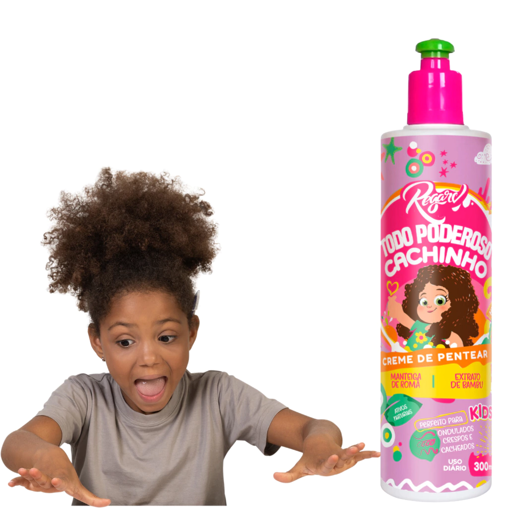 Creme de Pentear Regarv Todo Poderoso Cachinho Kids 300ml Hipoalergênico com Manteiga de Romã e Extrato de Bambu
