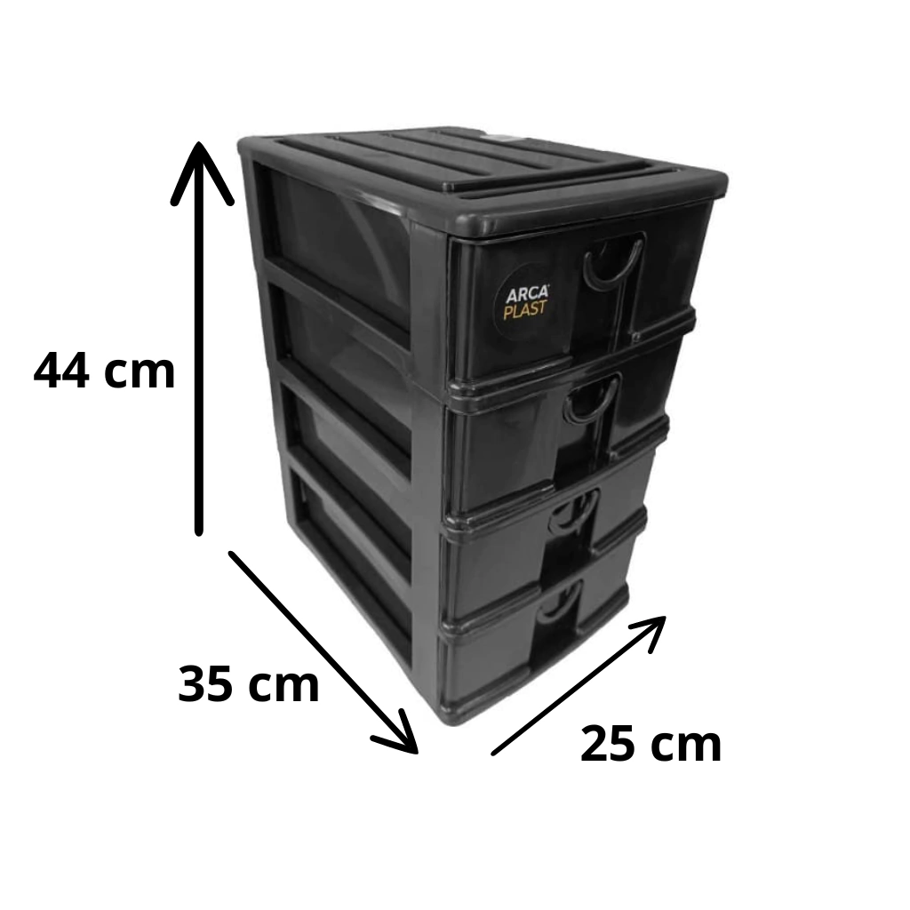 Gaveteiro 4 Gavetas Organizador Multiuso 35X25X44cm Para Talher Joias Bijuterias Ferramentas Arca Plast
