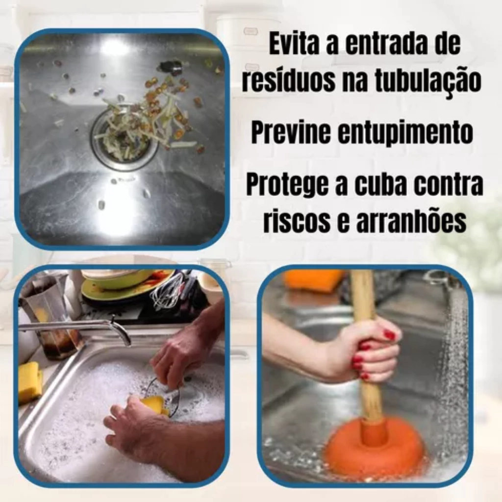 ✔ Retém resíduos de alimentos, evitando entupimentos.