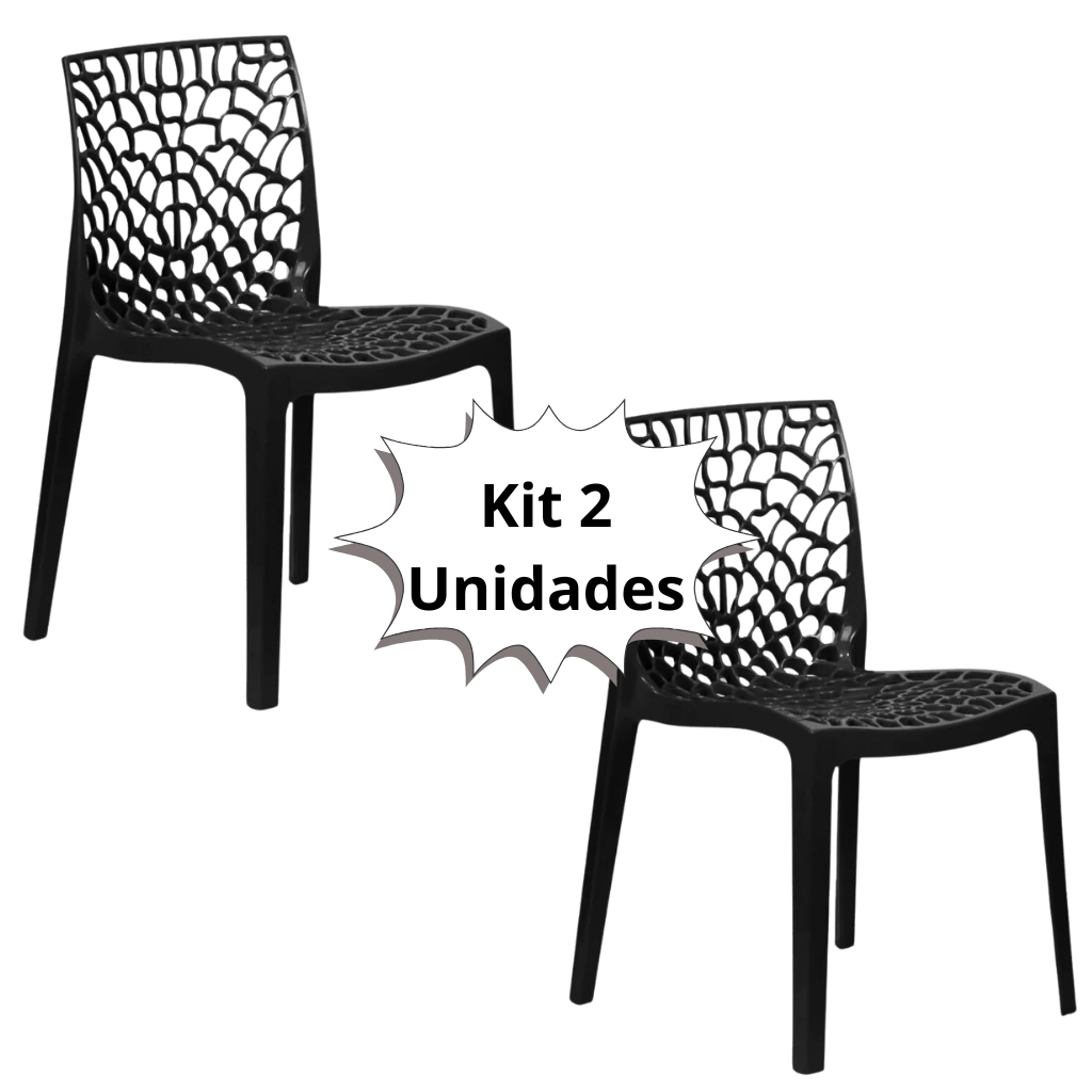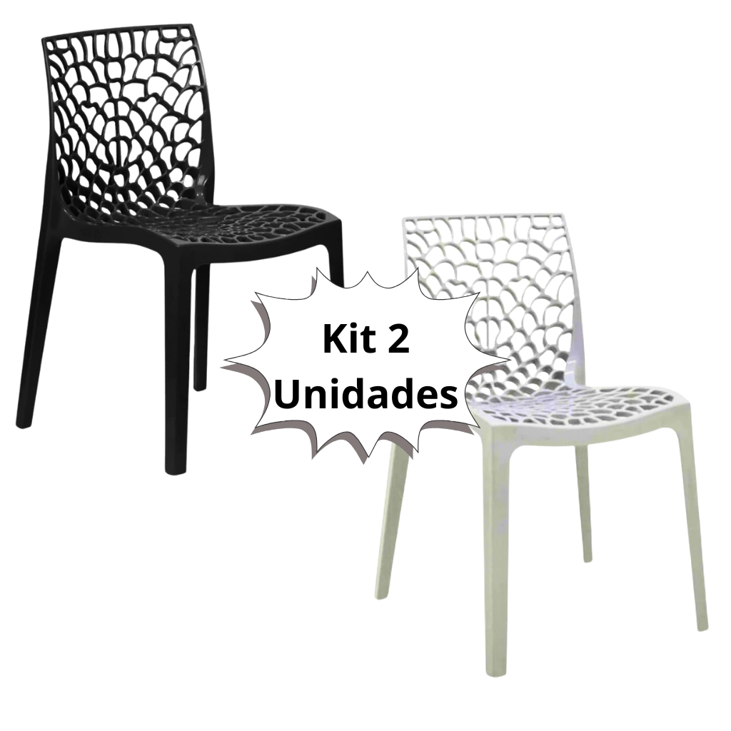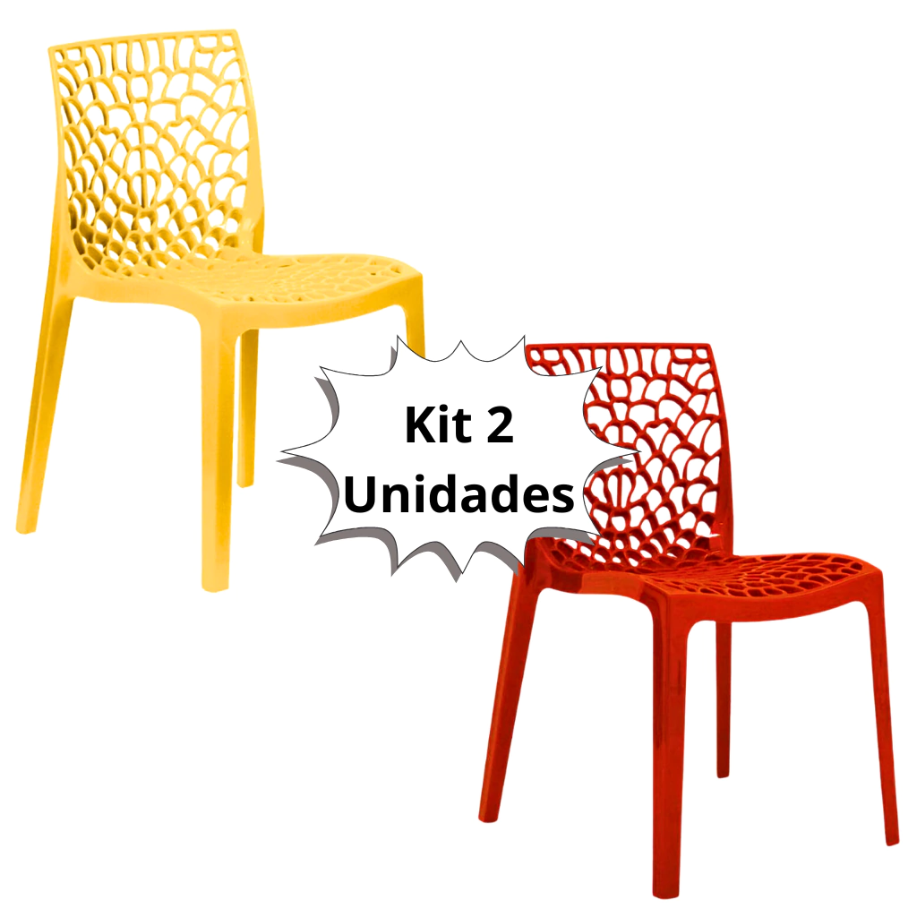 Kit 2 Cadeira Para Mesa de Jantar Gruvyer Polipropileno Vazado Coral Premium Eco Casa Cozinha Decoração New Plastic