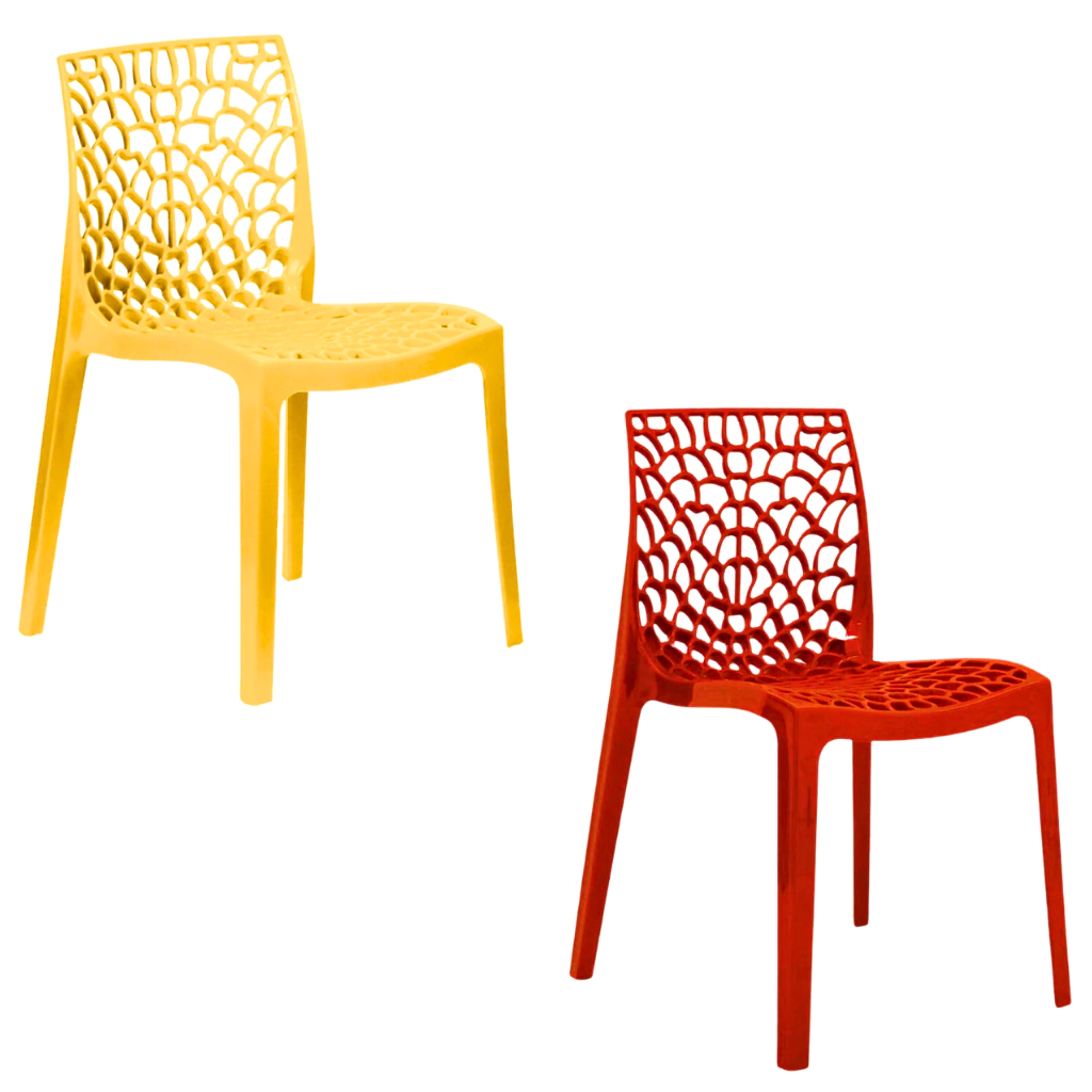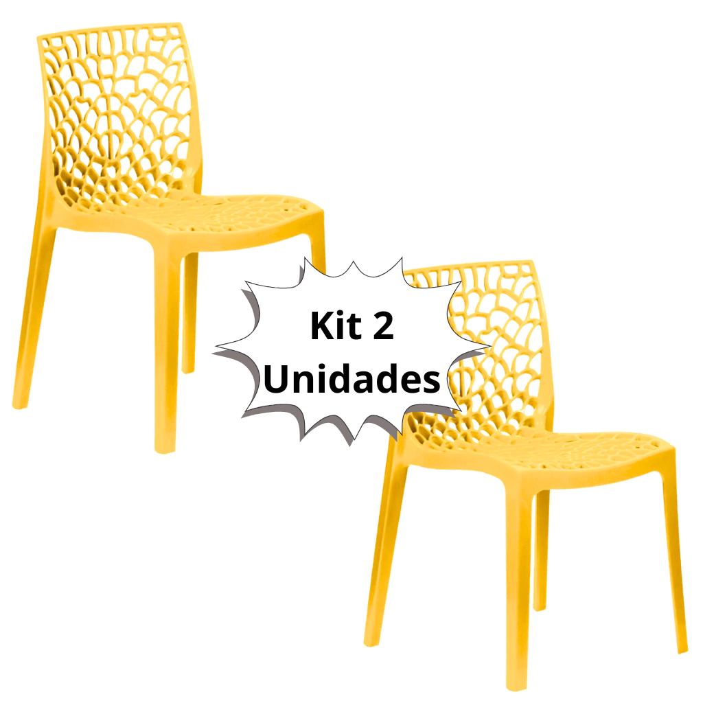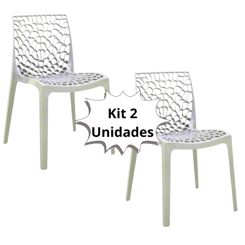 Kit 2 Cadeira Para Mesa de Jantar Gruvyer Polipropileno Vazado Coral Premium Eco Casa Cozinha Decoração New Plastic