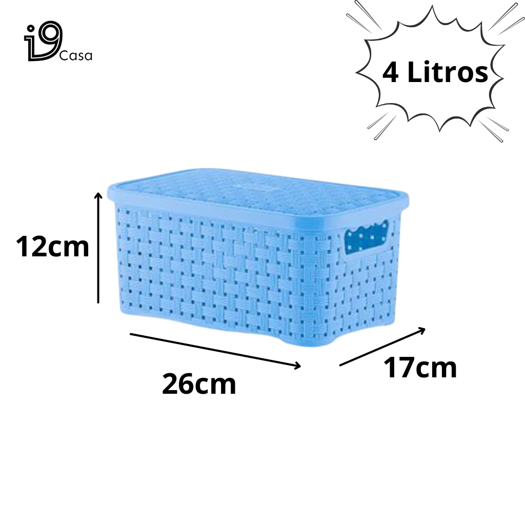 Kit 3 Caixa Organizadora Rattan 4, 10 e 16 Litros com Tampa Plástica Cesto Organizador 4, 10 e 16L Várias Cores New Plas