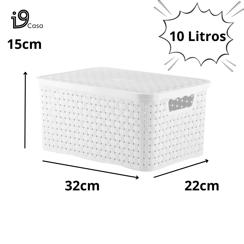 - Caixa Organizadora Rattan Branca New Plastic - 9,5 Litros: