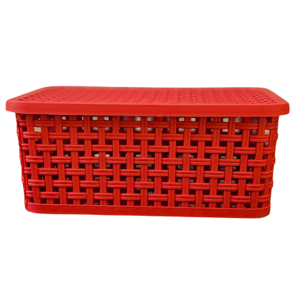 Kit 3 Caixa Organizadora Rattan com Tampa 4,2L Para Guarda-Roupa, Banheiro, Cozinha, Escritório, Maquiagem, Temperos