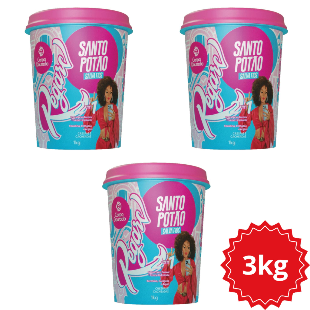 Kit 3 Creme de Tratamento para Pentear e Hidratante 2 em 1 Regarv 1kg Corpo Dourado Todos os Tipos de Cabelo