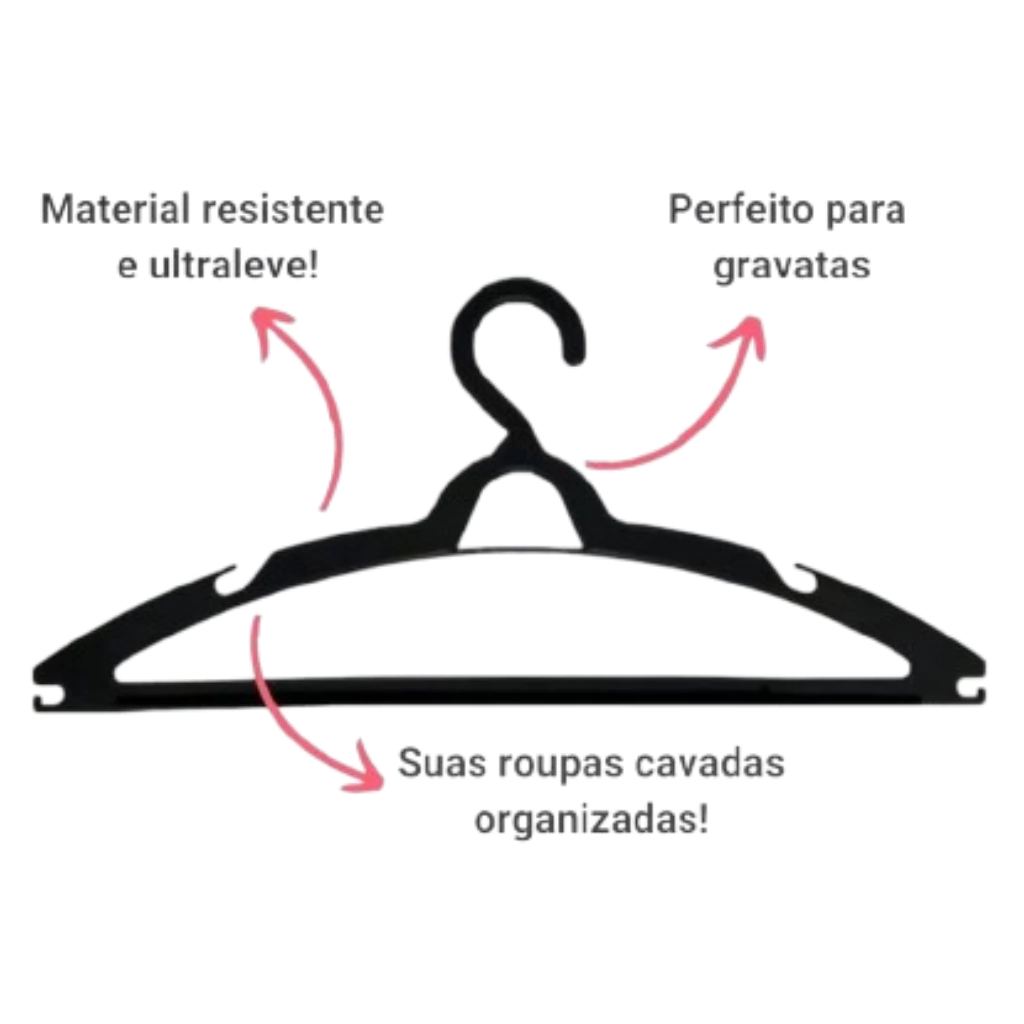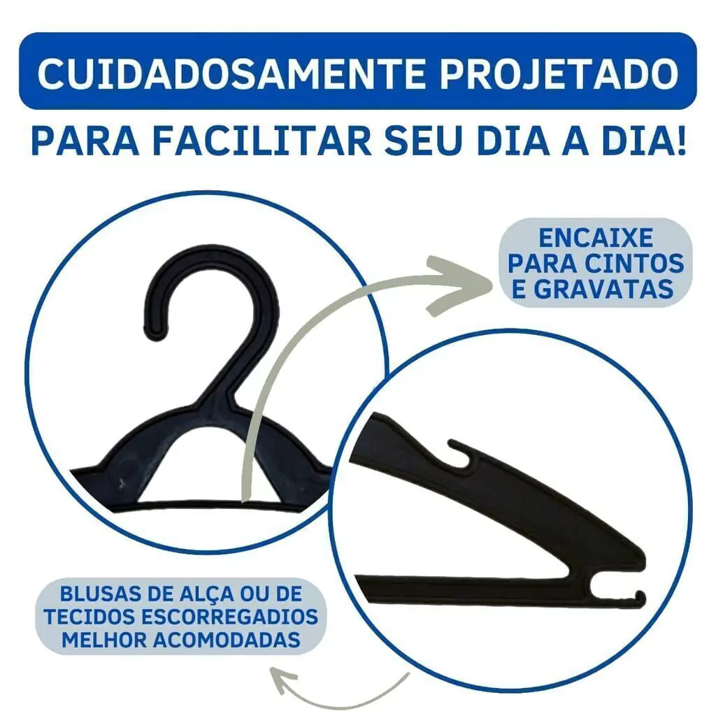 Kit 30 Cabides Adulto Reforçado Para Organização de Casa e Lojas Com Encaixe Para Cintos, Gravatas e Blusas de Alça