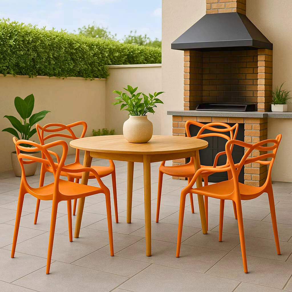 - Material de Alta Qualidade: Produzida em polipropileno, a Cadeira Allegra é extremamente resistente, suportando até 182kg. Esse material garante longevidade ao produto, tornando-o ideal para uso diário.