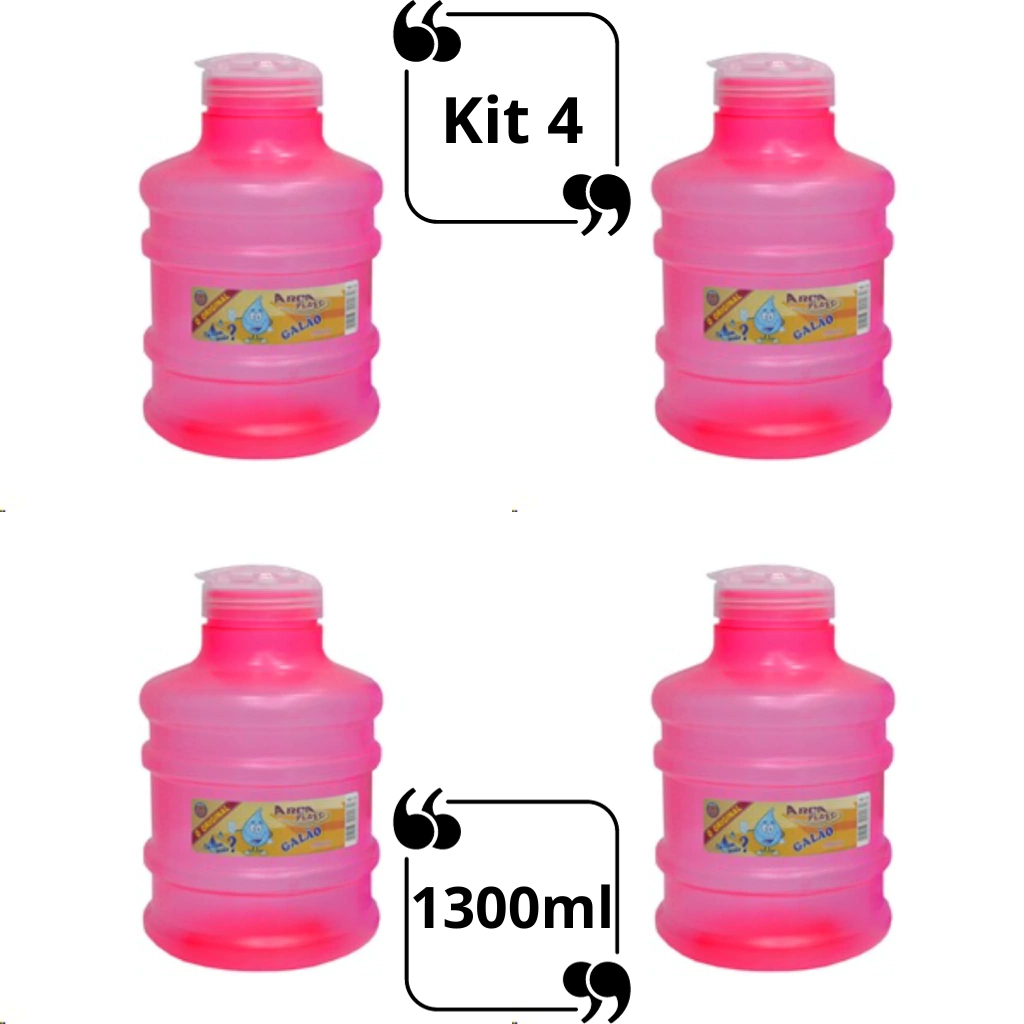 Kit 4 Garrafa de Agua Para Geladeira 1,3L Modelo Galão Com Tampa Clic Galaozinho 1300ml Colorida Livre de BPA Arcaplast