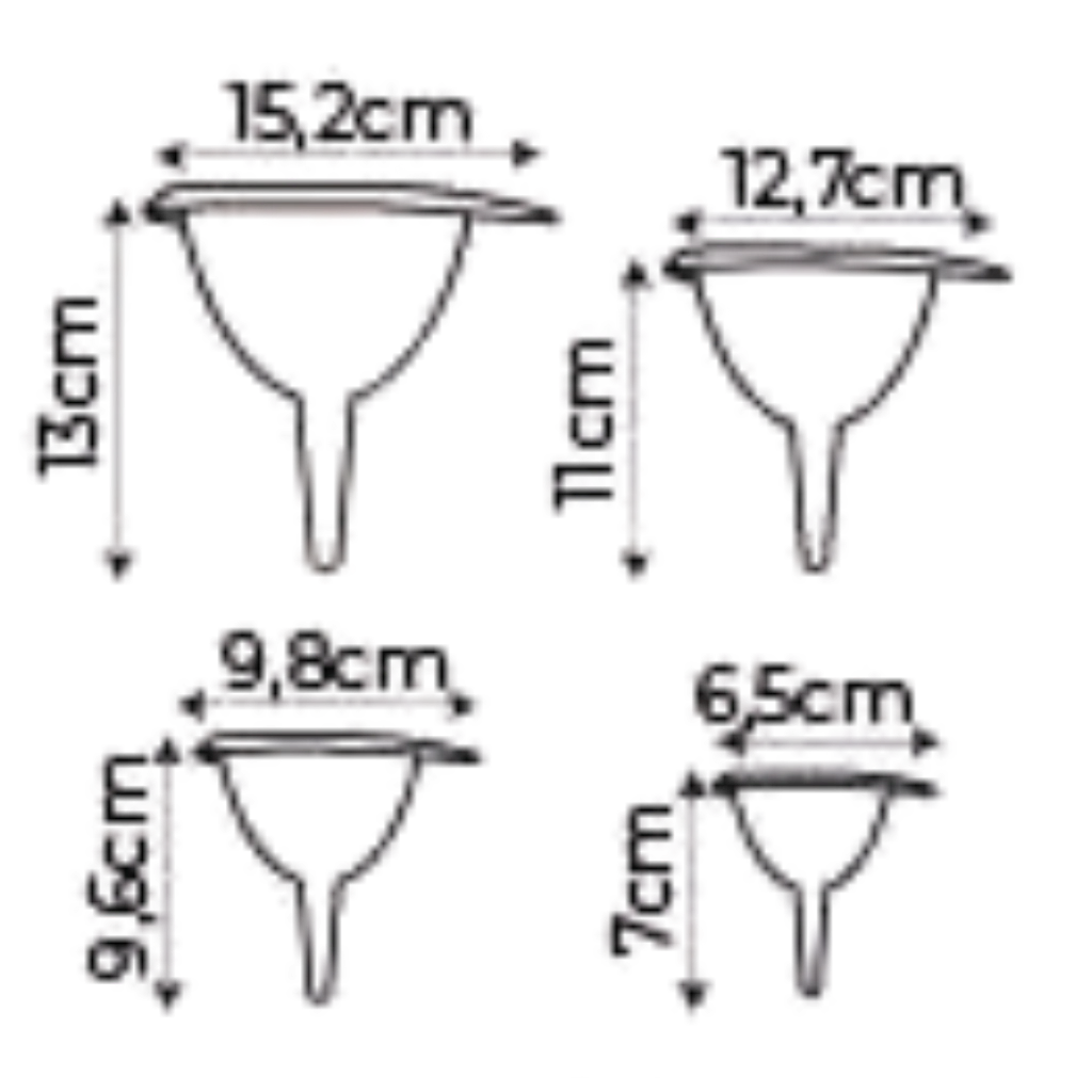 1 Kit com 4 Funis Coloridos (tamanhos variados)