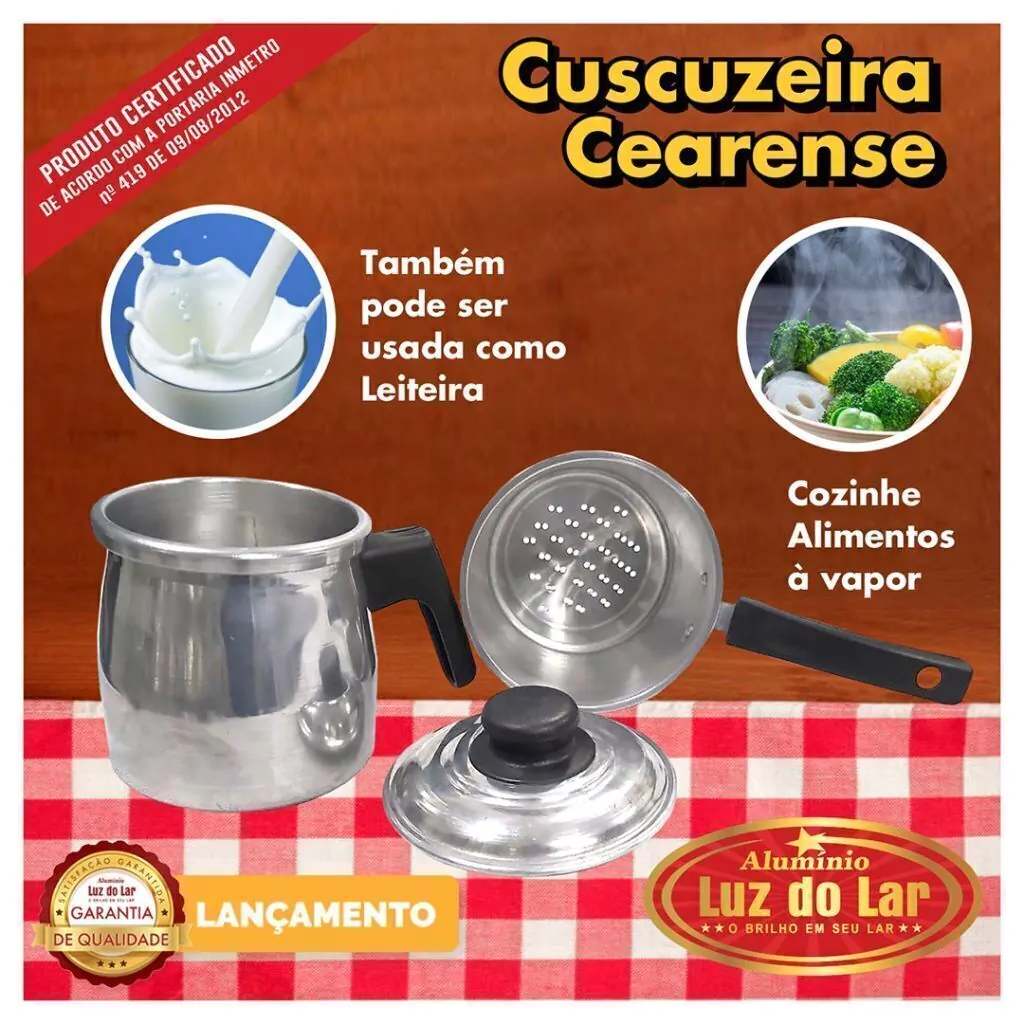 A Cuscuzeira é para quem gosta e aprecia um bom cuscuz. Oferecendo o melhor produto para quem procura fazer o delicioso Cuscuz. Fabricada em alumínio , possui extrema durabilidade e garante um produto com alto padrão de conservação dos alimentos e que dura por muito mais tempo.