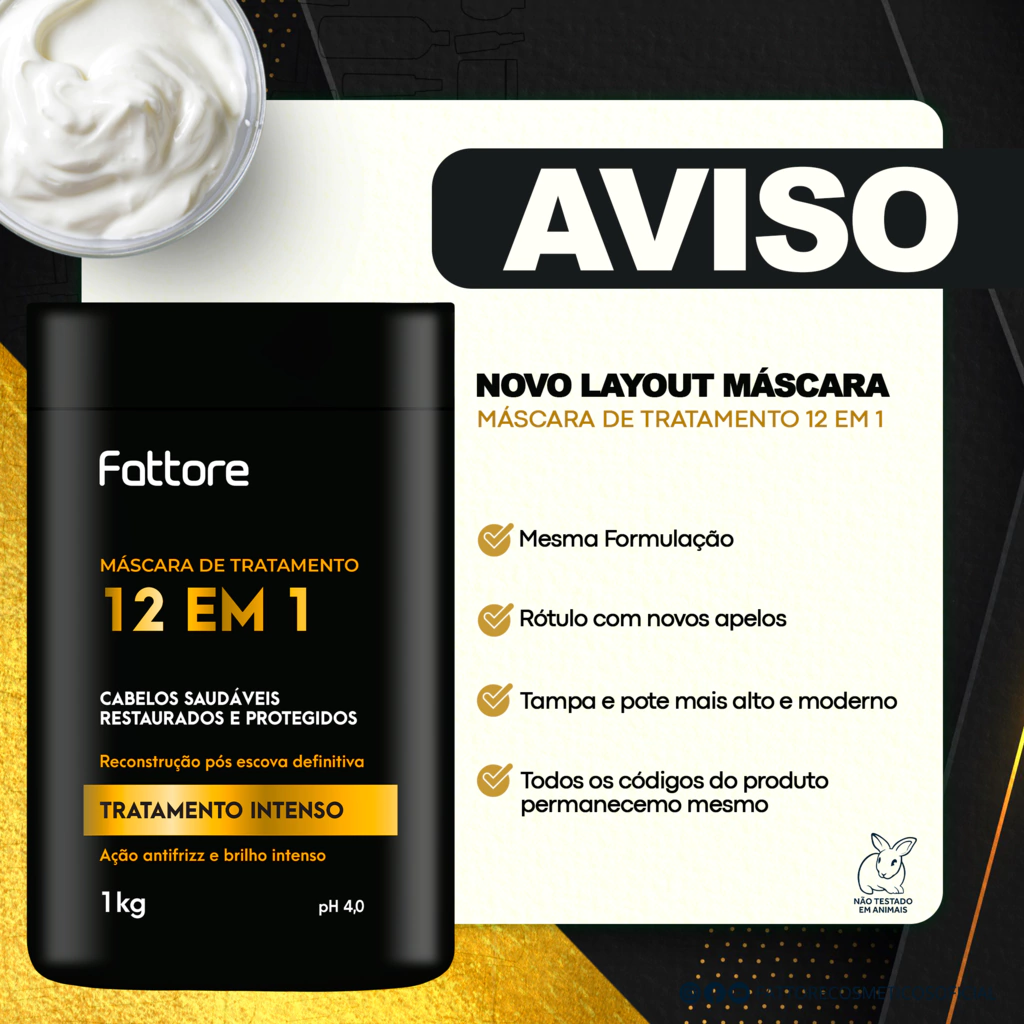 Máscara de Tratamento Fattore 12 em 1 - 1kg Profissional Tratamento Intenso Restauração Pós Escova Definitiva