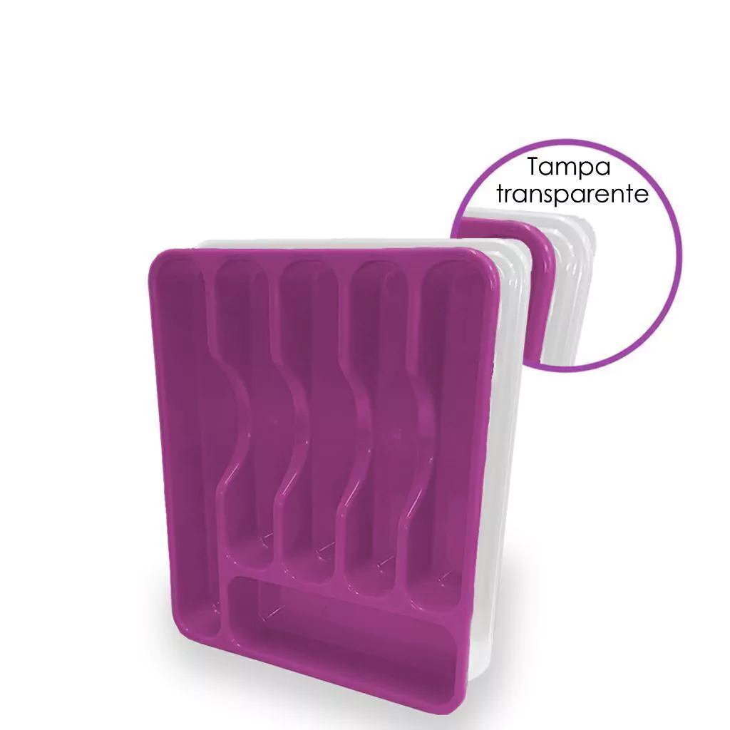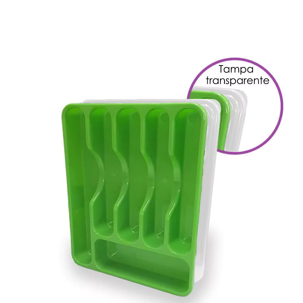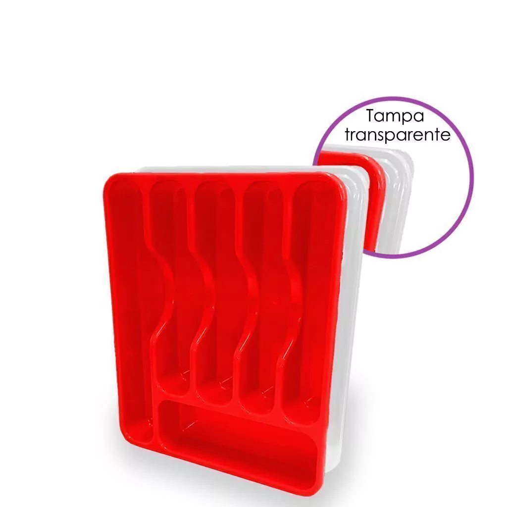 Porta Talheres de Plástico Grande com Tampa 6 Divisórias Colorido