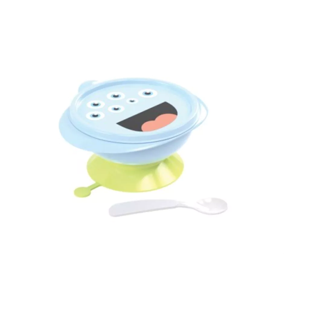 Tigela de Plástico 240 ml com Ventosa, Colher e Tampa Bichinhos-Azul Infantil
