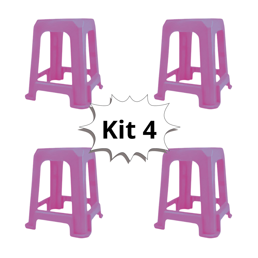 Kit 4 Banco Plastico Banqueta Banquinho Suporta Até 100 Kg Cores Variadas Lateral Reforçada Empilhável