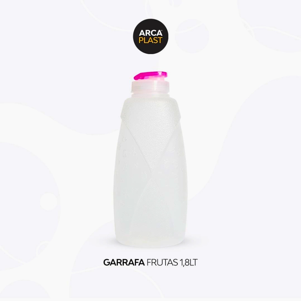 Kit 4 Garrafa de Agua Para Geladeira 1,8 Litro Gelada 1800ml Alto Relevo Modelo Frutas Transparente Cozinha Arcaplast