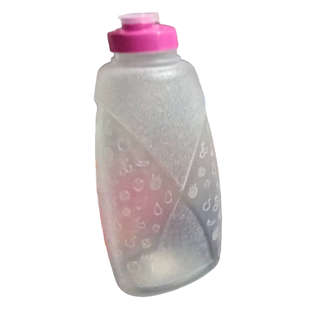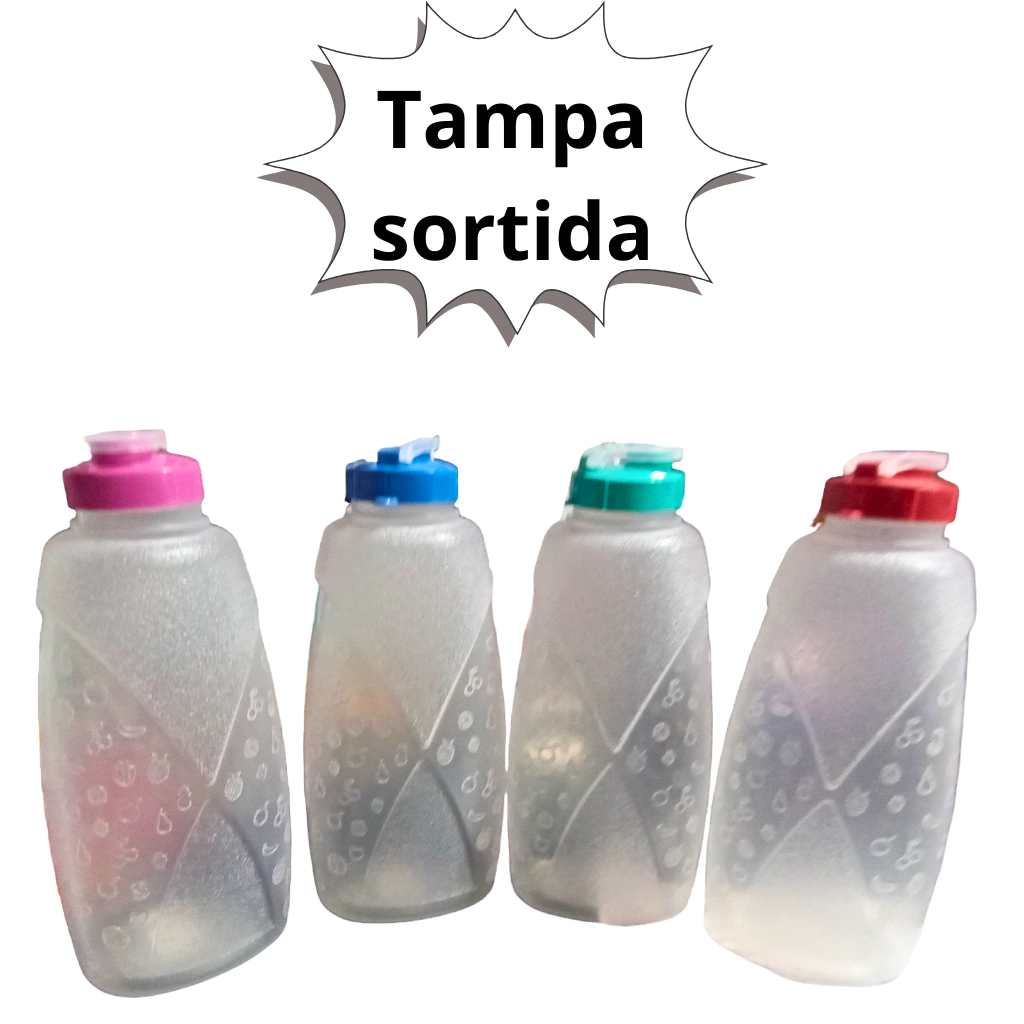 - Garrafa transparente, facilitando a visualização do conteúdo