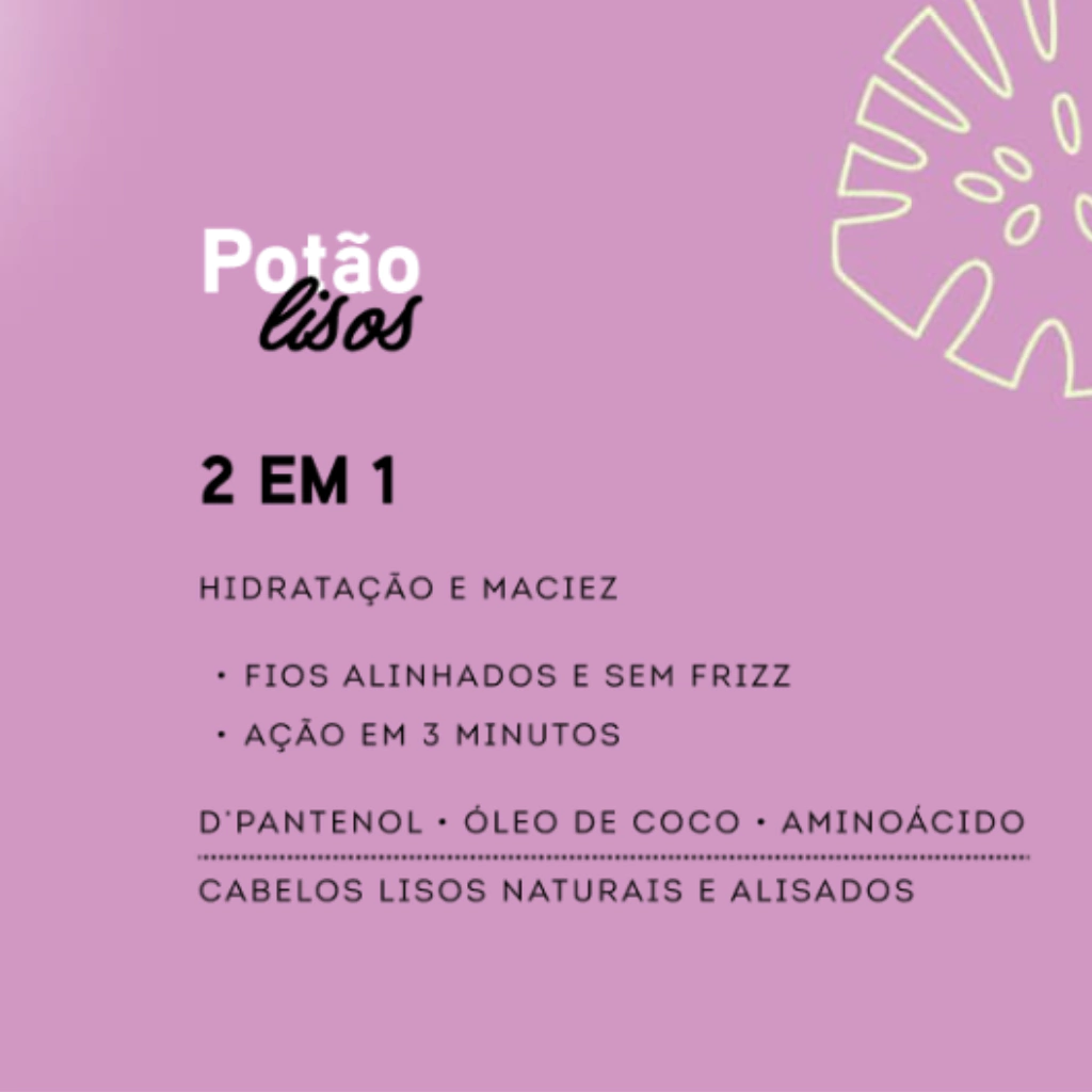 Benefícios: Hidratação e maciez, fios alinhados e sem frizz.