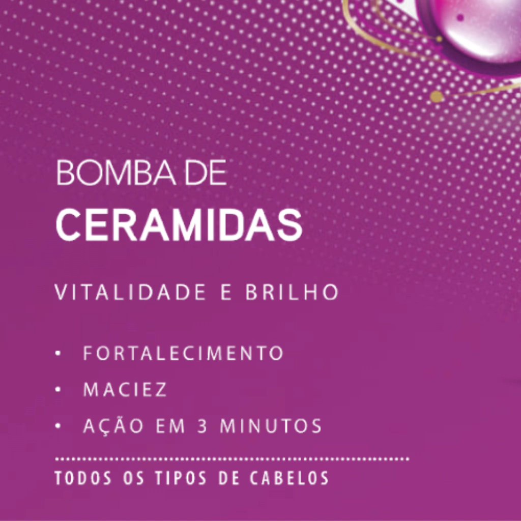 Benefícios: Hidratação intensiva, reconstrução profunda, selagem dos fios, brilho e maciez.