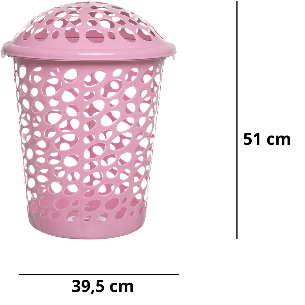 - Dimensões do Cesto Telado: Altura: 51cm, Diâmetro: 39,5cm, Peso: 445g