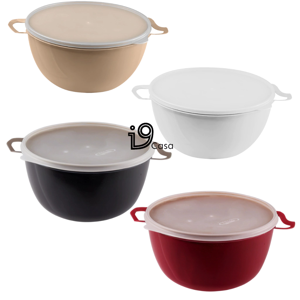Pote de Plástico Bacia Com Tampa 10 Litros Cumbuca Vasilha Saladeira Tapoer Grande Tapuer Quality Color Lummar Redonda